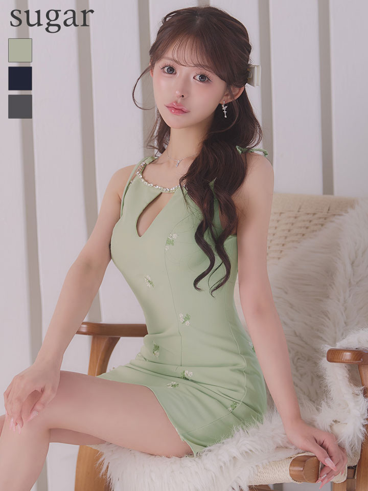 XSサイズあり【ANGEL R/エンジェルアール】フラワー/ バストカット/ ショルダーリボン/ ビジュー/ フレア/ マイクロミニドレス/ キャバドレス[OF2] [AR26201-MIGR-S260119]