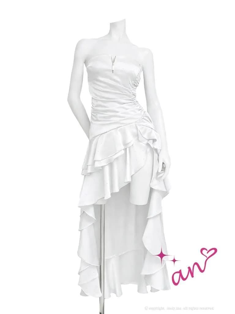 アシンメトリーなティアードフリルと前後で丈感に差をつけたスカートが存在感抜群♡