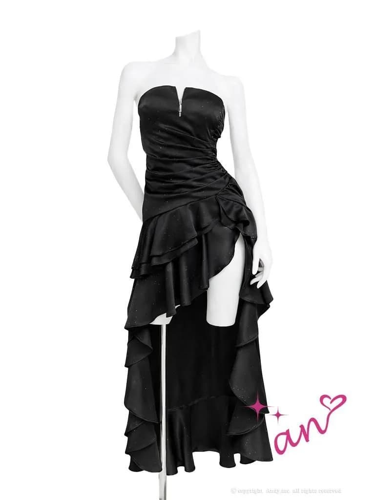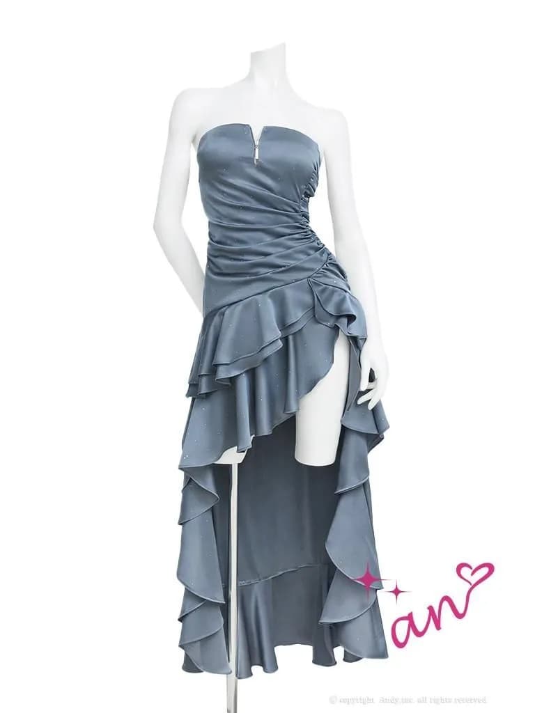 XSサイズあり【an /アン】 バストジップ/ ベア/ ラインストーン/ アシンメトリー/ サイドギャザー/ テールカット/ ティアードフリル/ ロングドレス/ キャバドレス[OF05 [AOC4046-BL-2601]