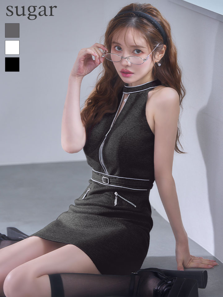 XSサイズあり【IRMA/イルマ】ラメニット/ ビジュー/ リブ/ ハイネック/ カットアウト/ バストジップ/ ウエストマーク/ ストレッチ/ タイト/ ミニドレス/ キャバドレス[OF2A] [61016-IR-B-S260121]