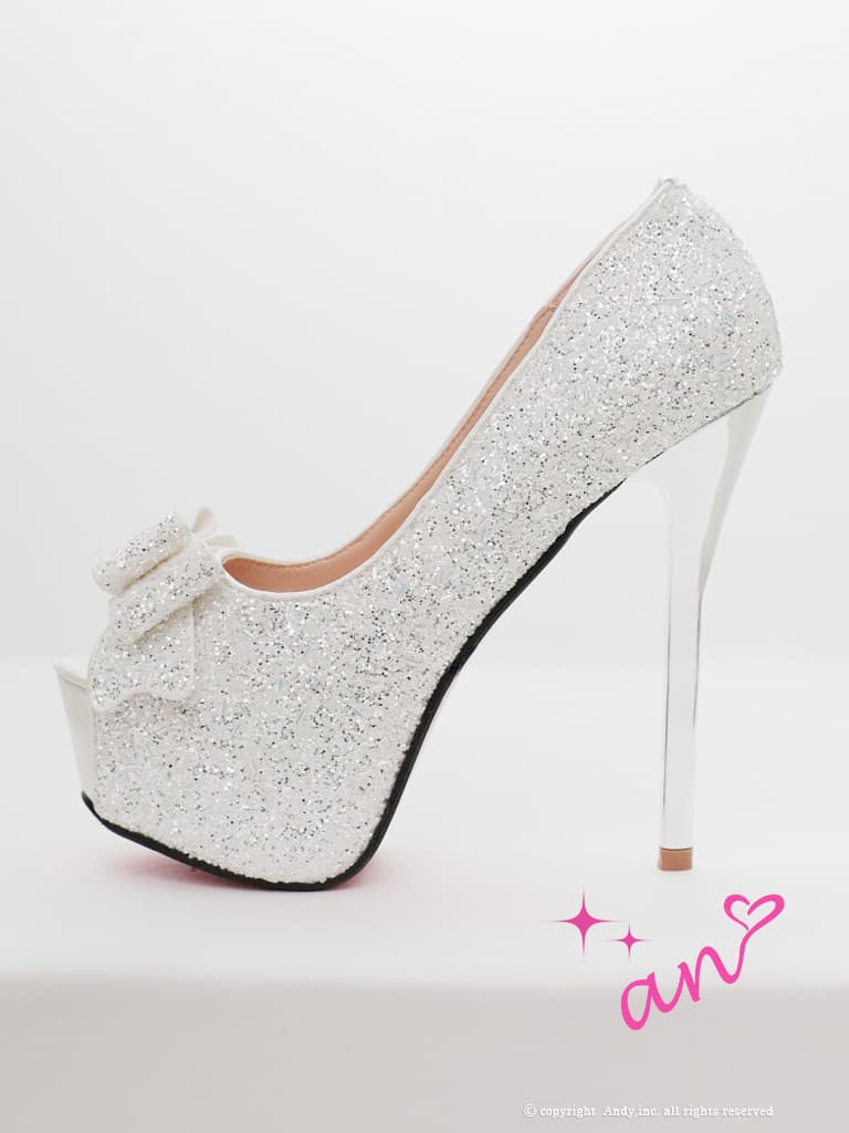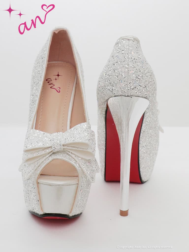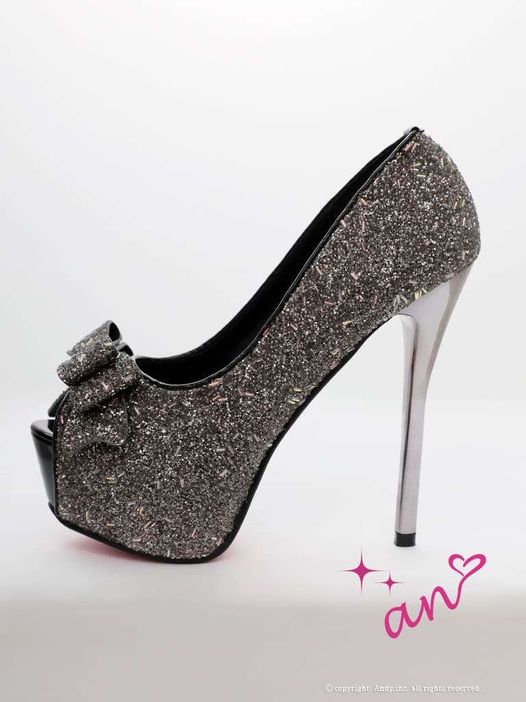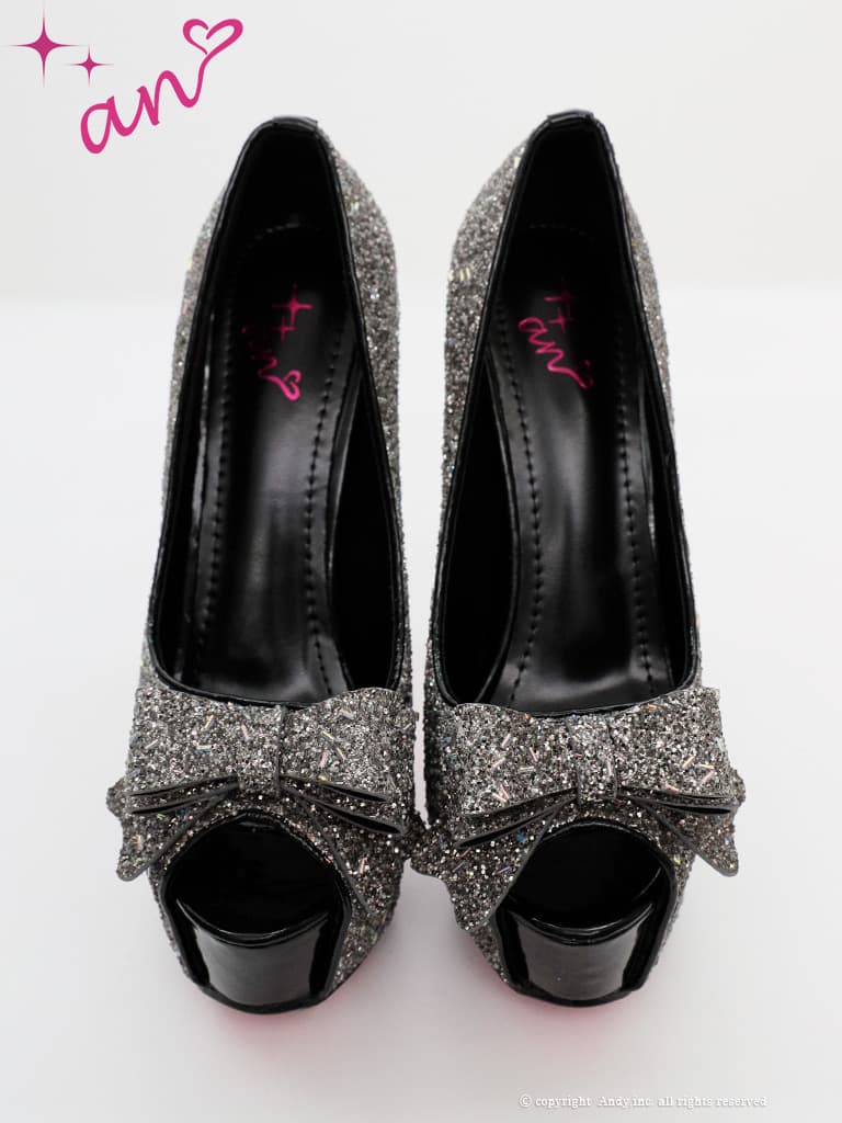 【an】2color/ 14cmヒール/ リボン/ グリッター/ ラメ/ ハイヒール/ ピンヒール/ オープントゥパンプス [OF02] [AOC-SH057-W-2601]