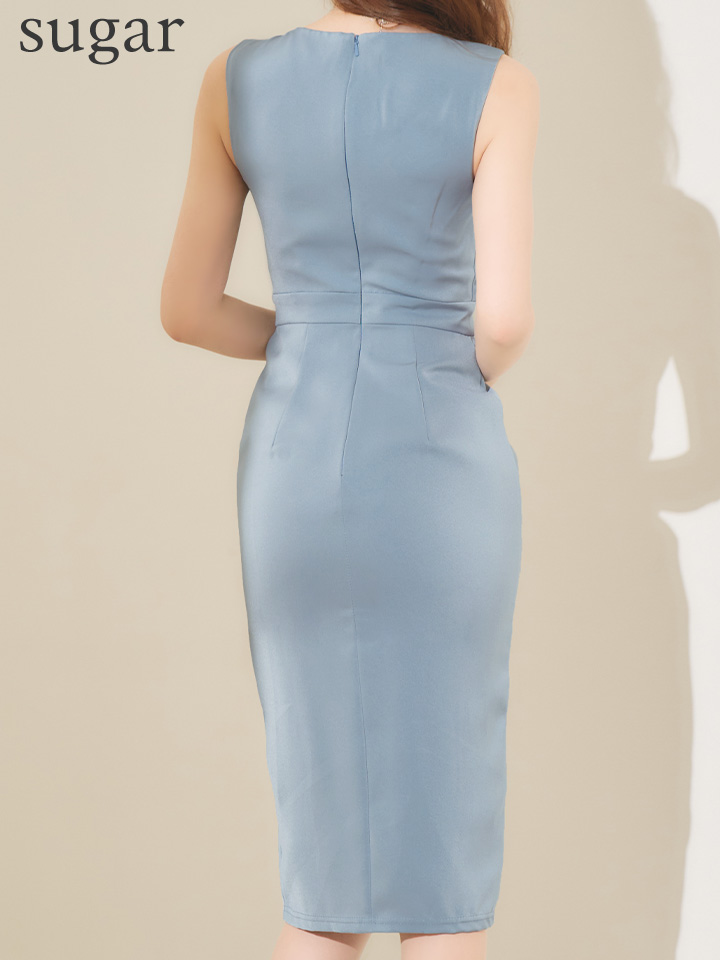 XSサイズあり【Veautt/ヴュート】フロントドレープデザイン/ バストタック/ ウエストマーク/ フリル/ タイト/ ミディアムドレス/ キャバドレス【OF05】 [VT022602-GY-S260123]