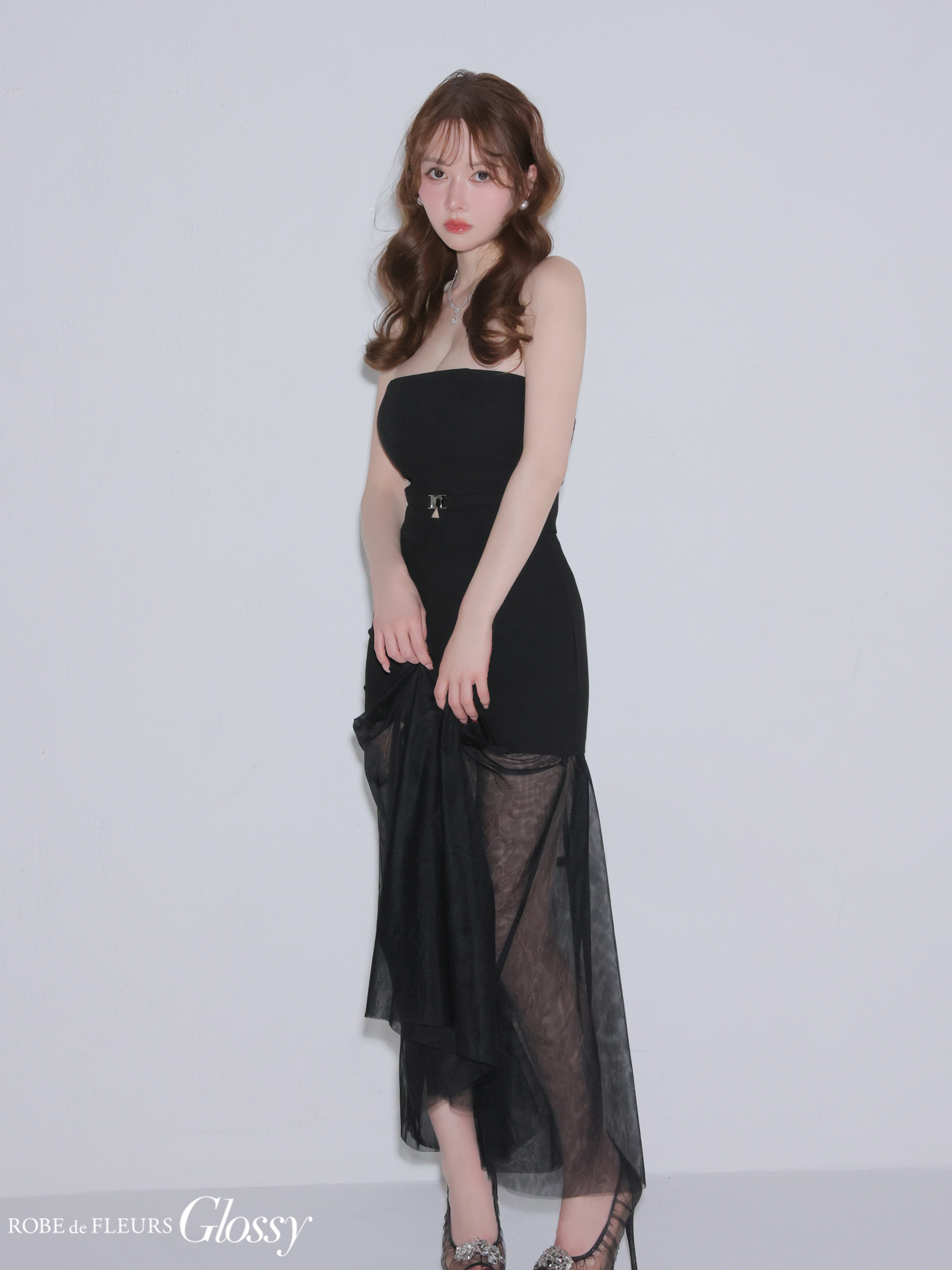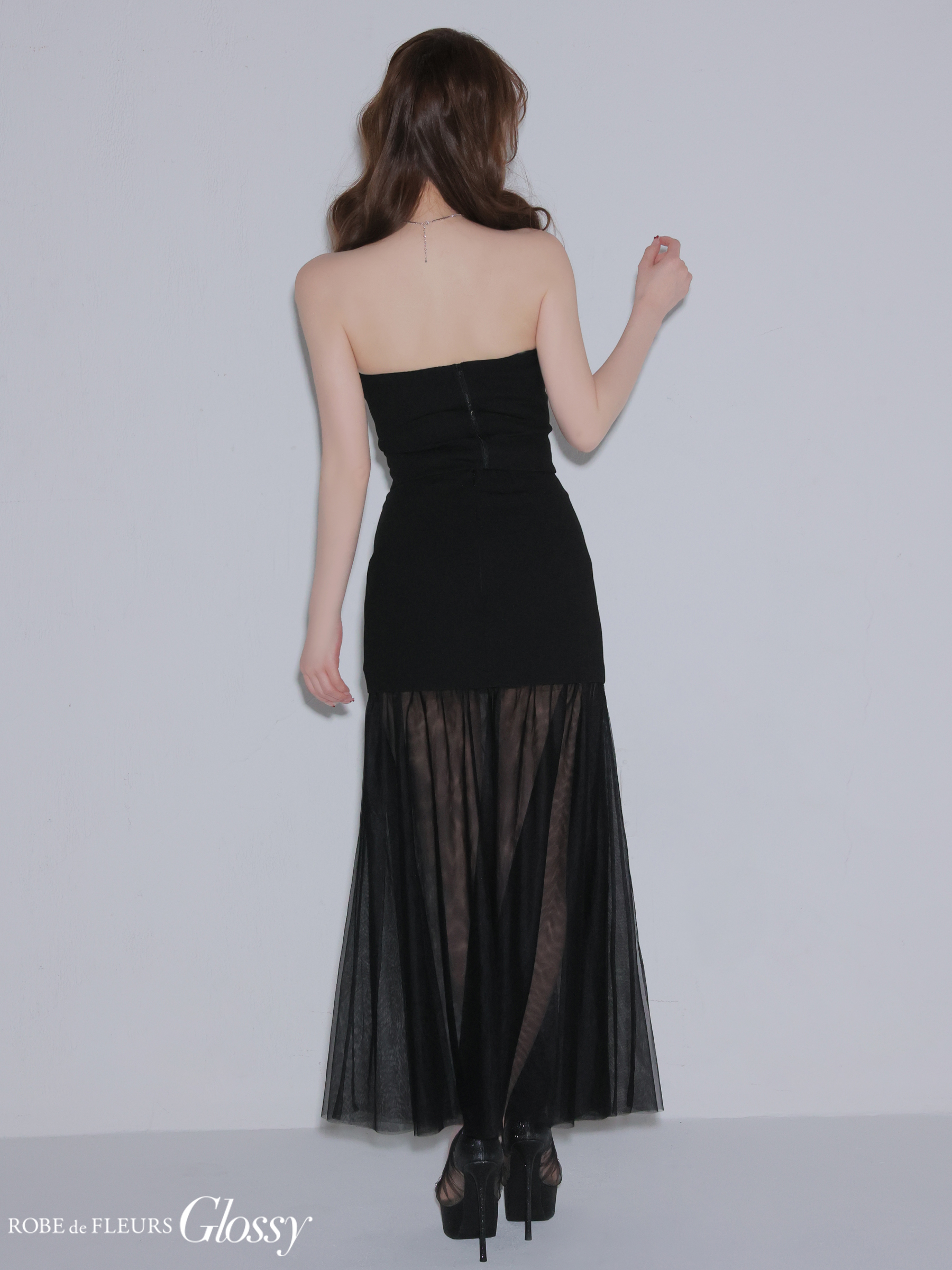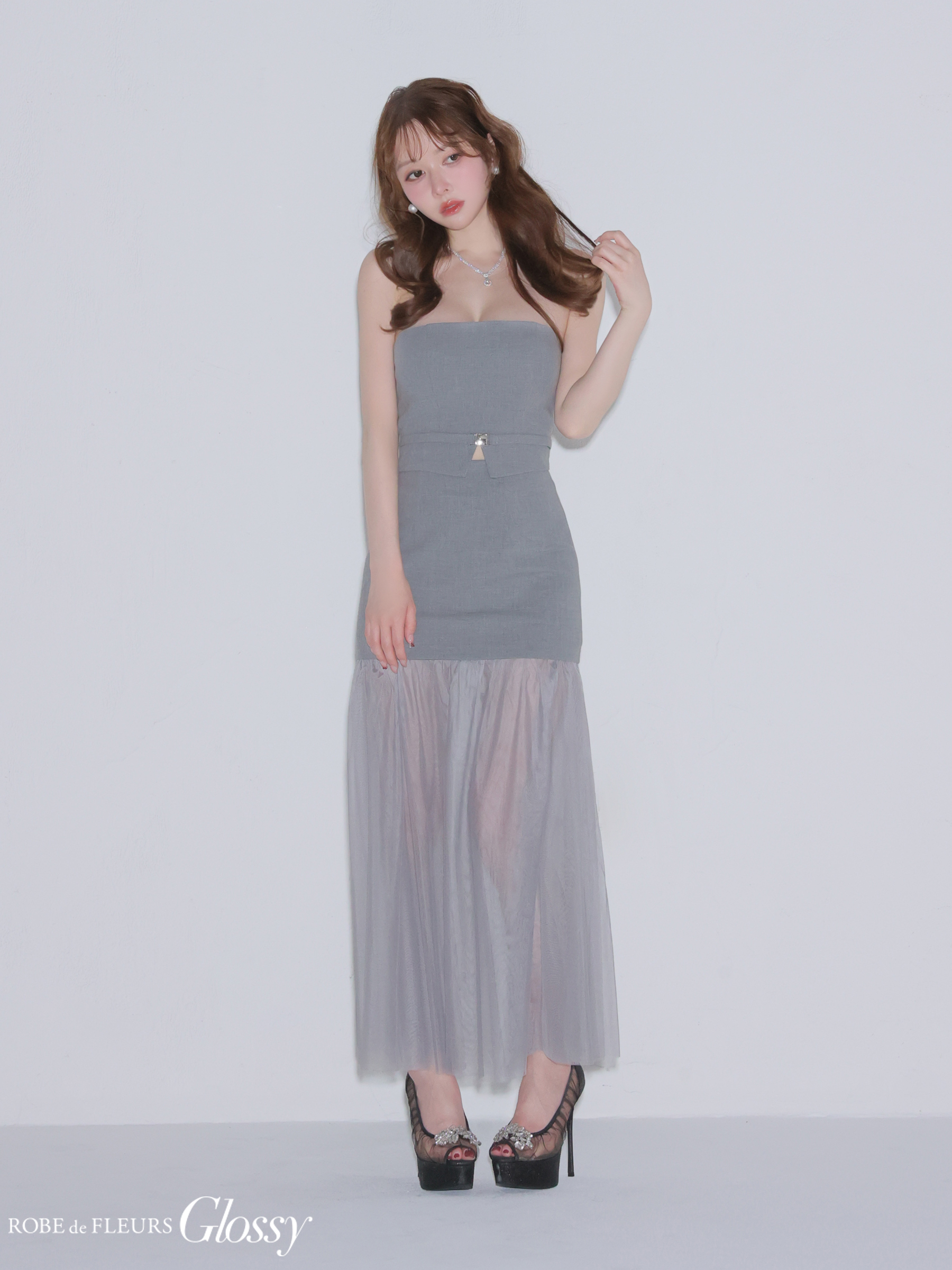 XSサイズあり【Glossy/グロッシー】シアー/ チュール/ ドッキング/ セットアップ/ フレア/ ワンピース/ ロングドレス/ キャバドレス[OF08] [GL3489-GY-2601]