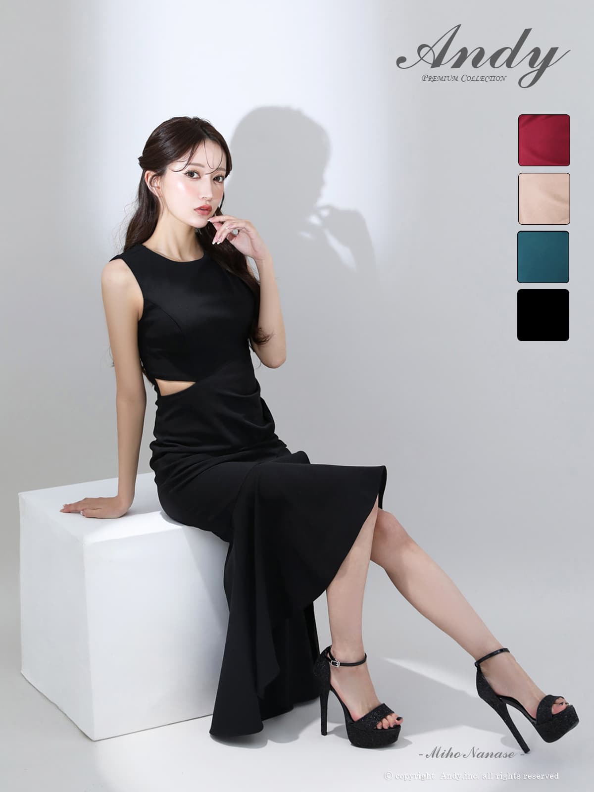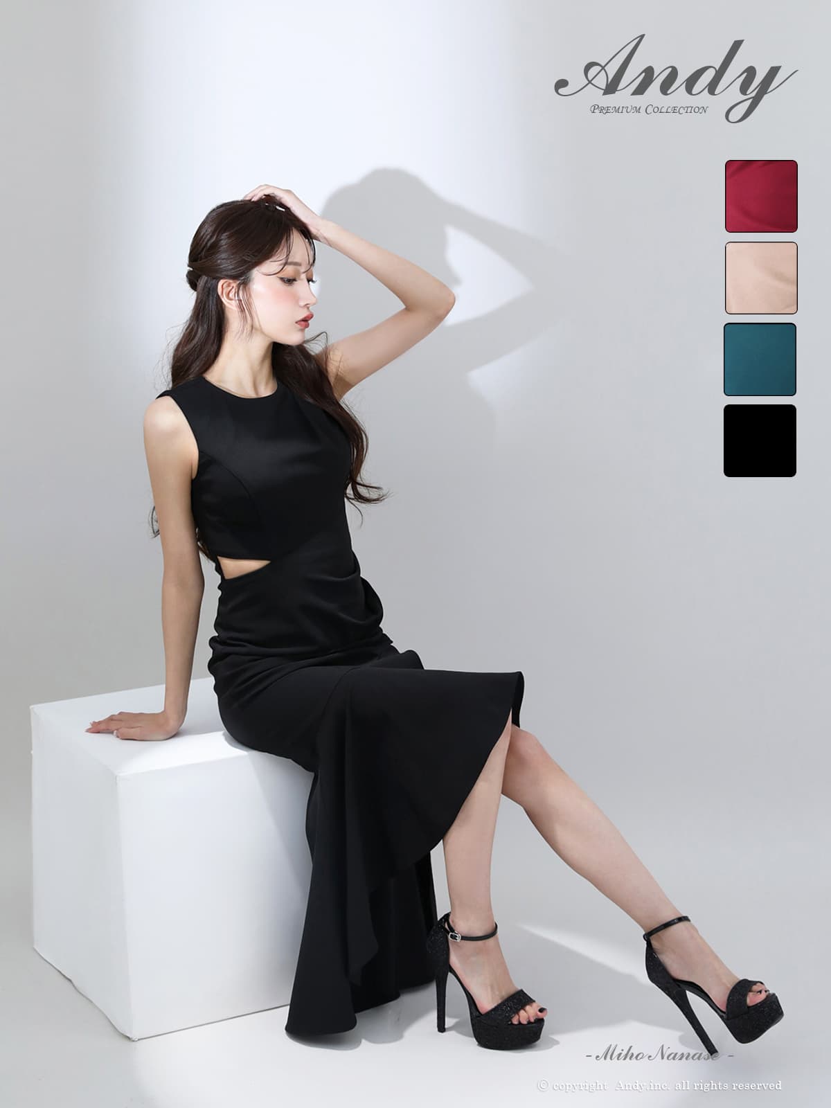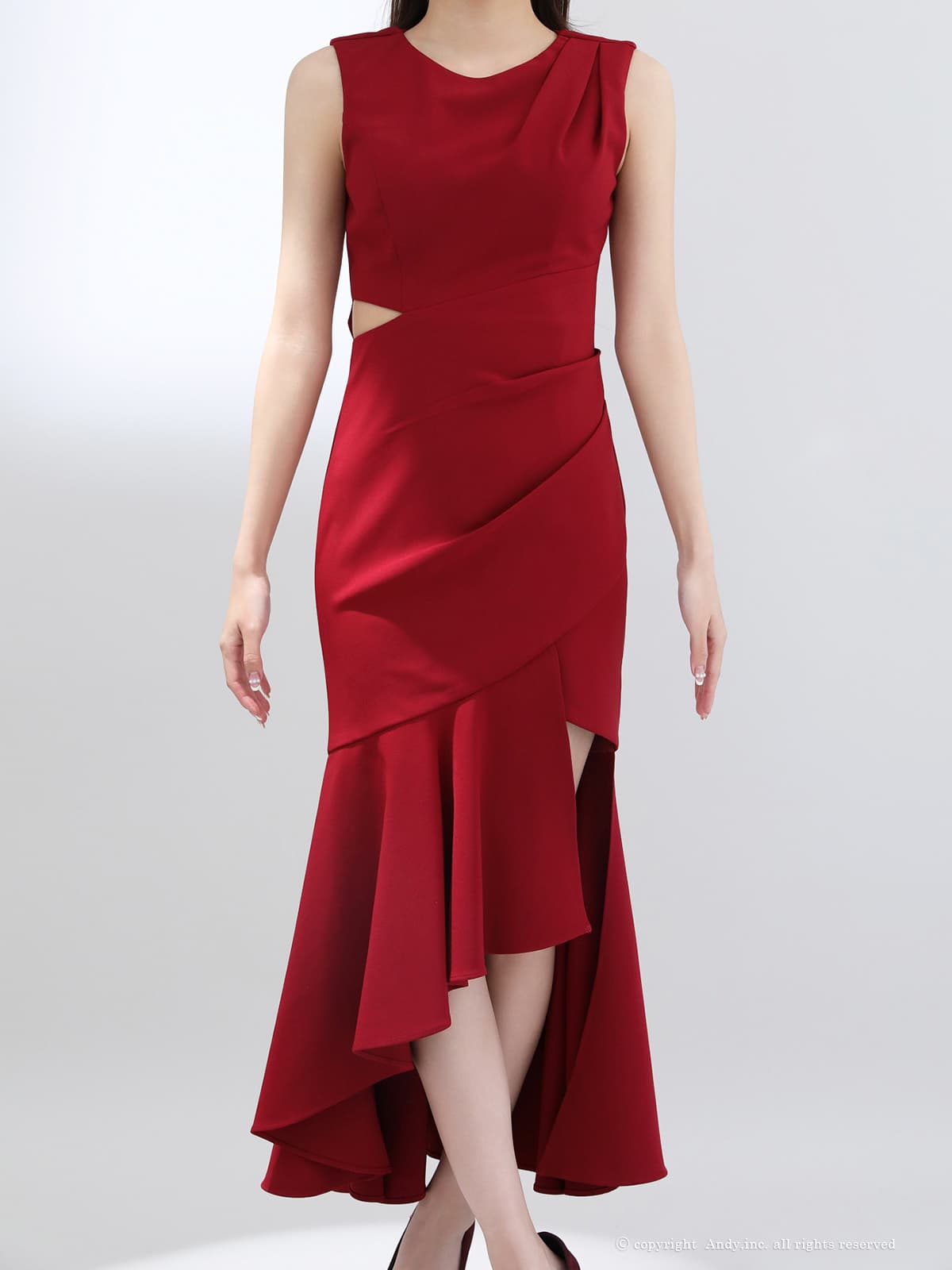 【ANDY/アンディ】ウエストカット/ アシンメトリー/ ノースリーブ / フリル/ テールカット/タック/ ミディアムドレス/ キャバドレス[OF05] [ON3035-B-S260123]