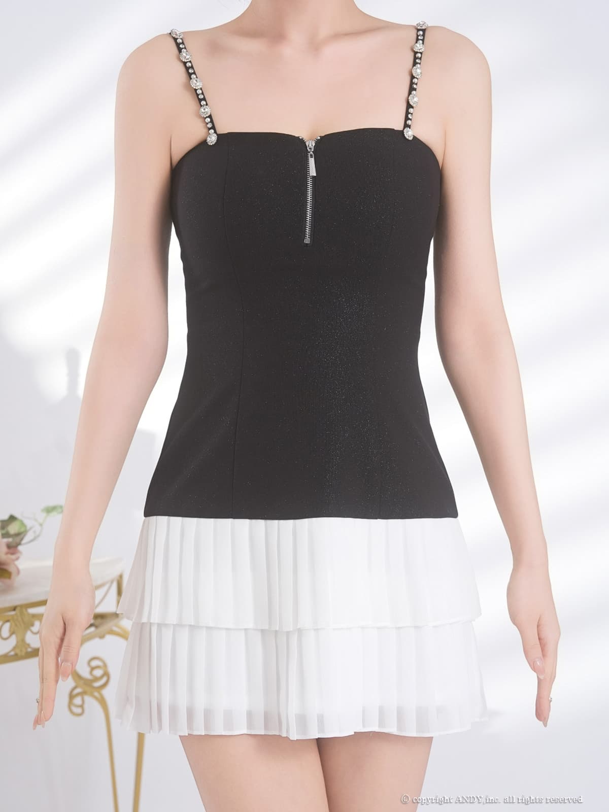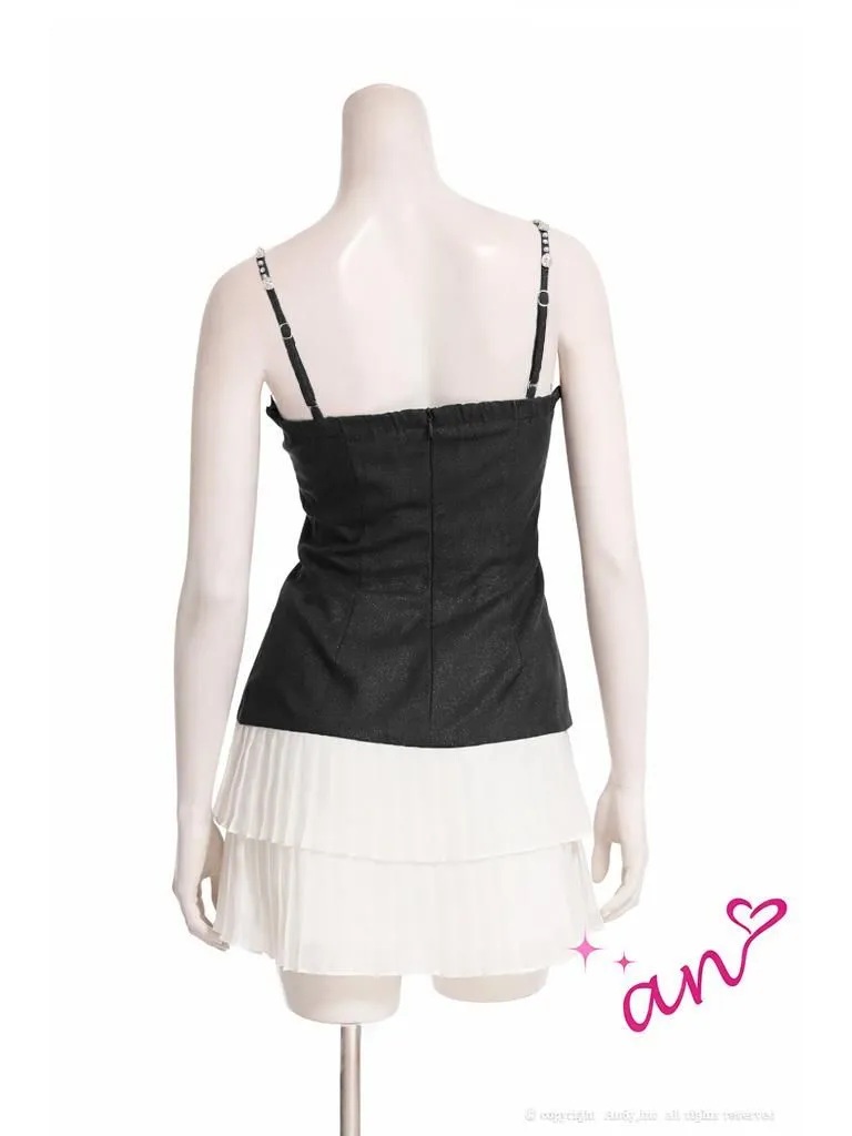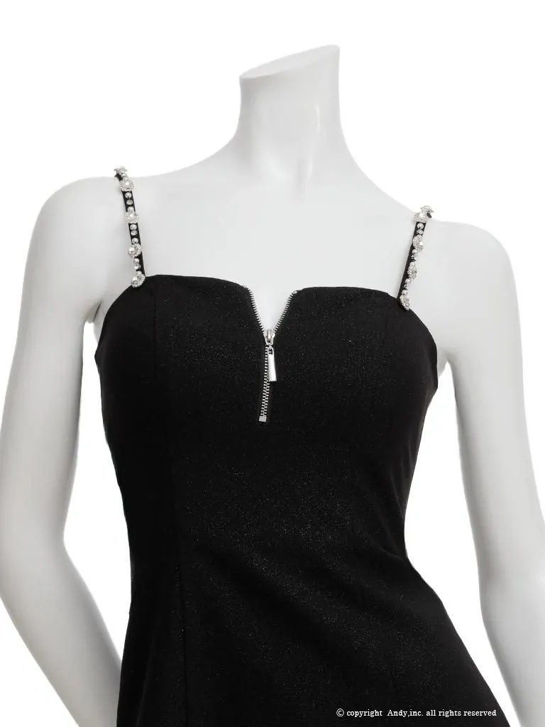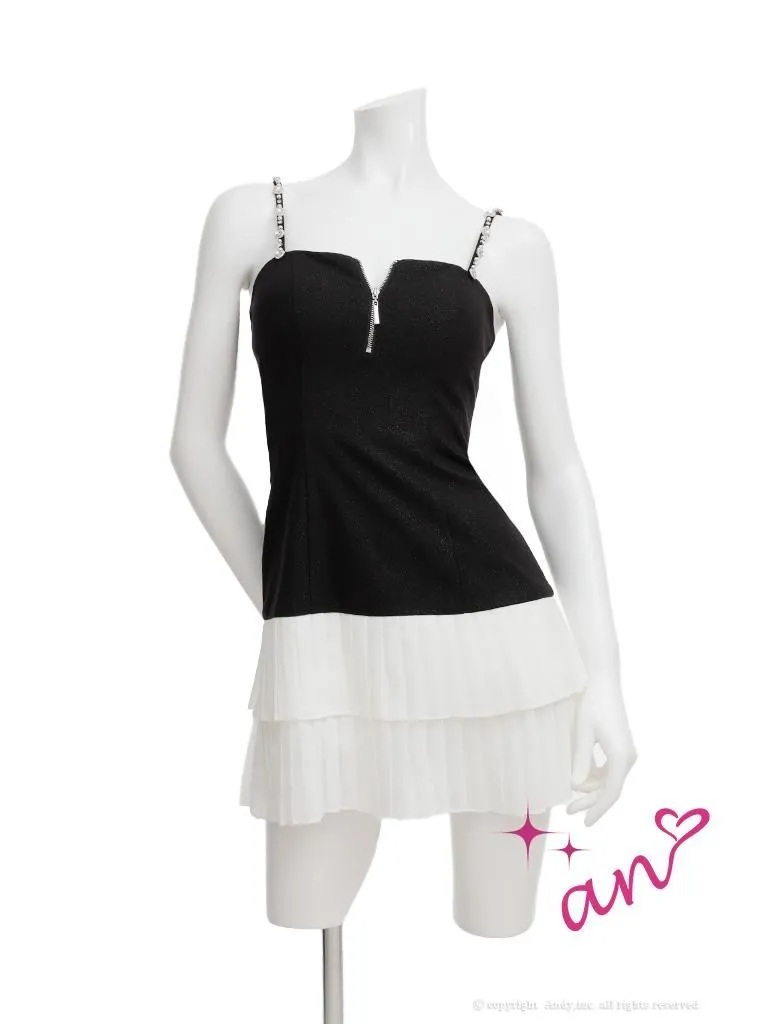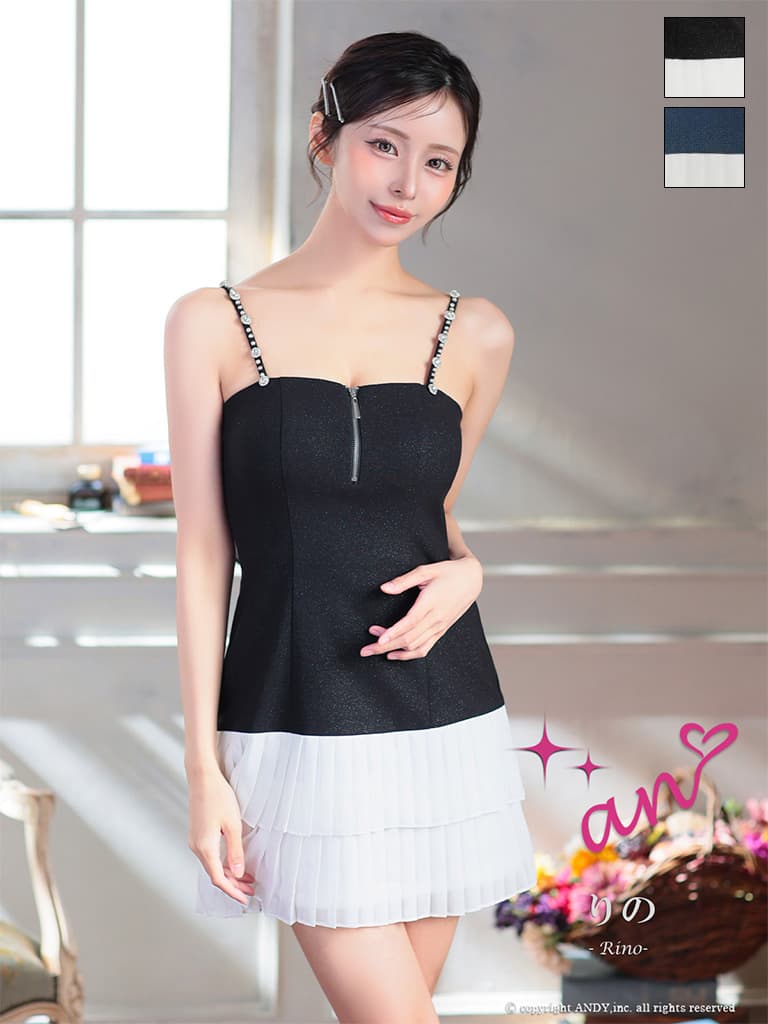 XSサイズあり【an/アン】キャミソール/ ビジューストラップ/ バストジップ/ ティアード/ プリーツ/ フレア/ ミニドレス/ キャバドレス[OF05] [AOC4053-BxW-2601]