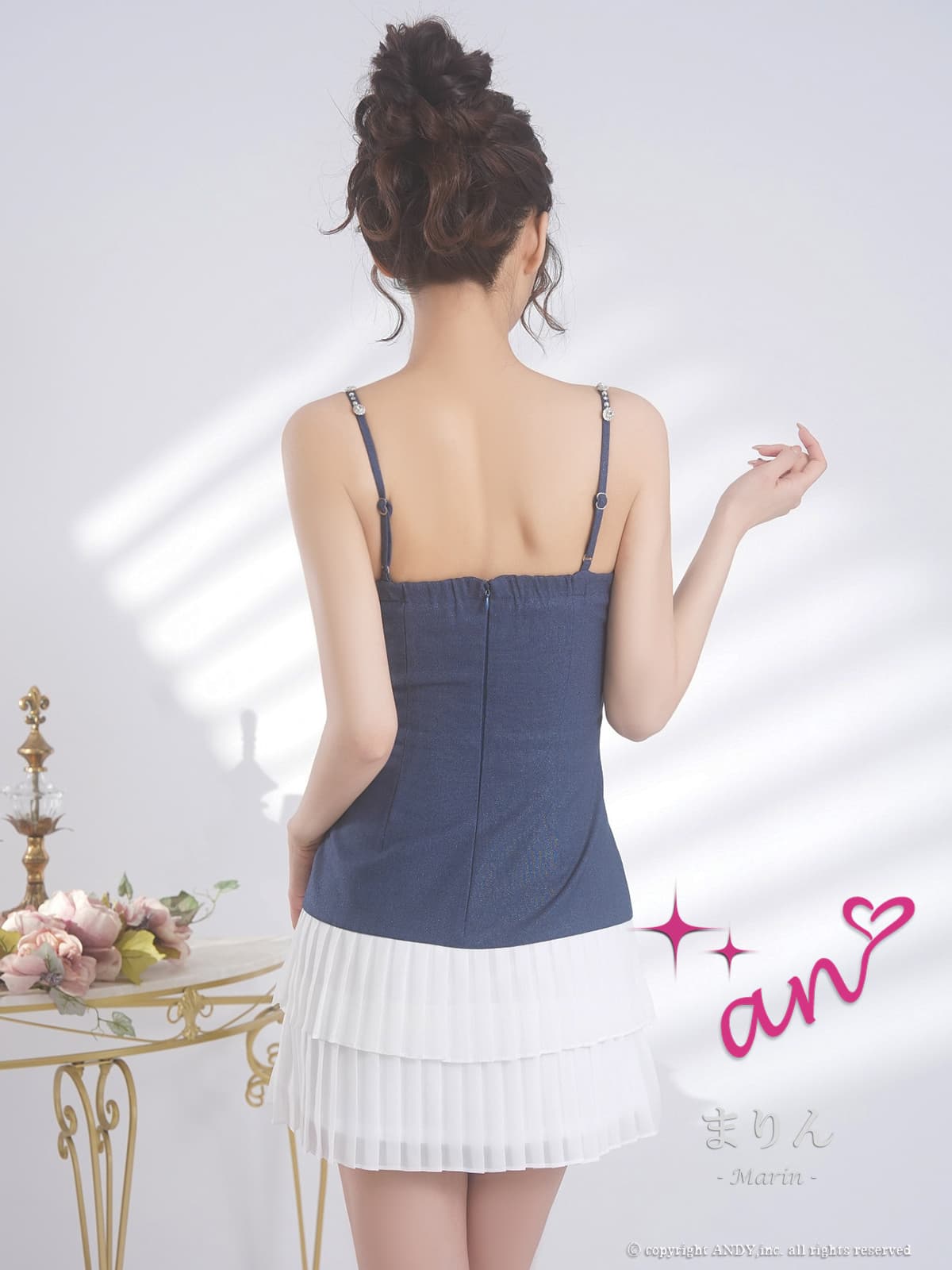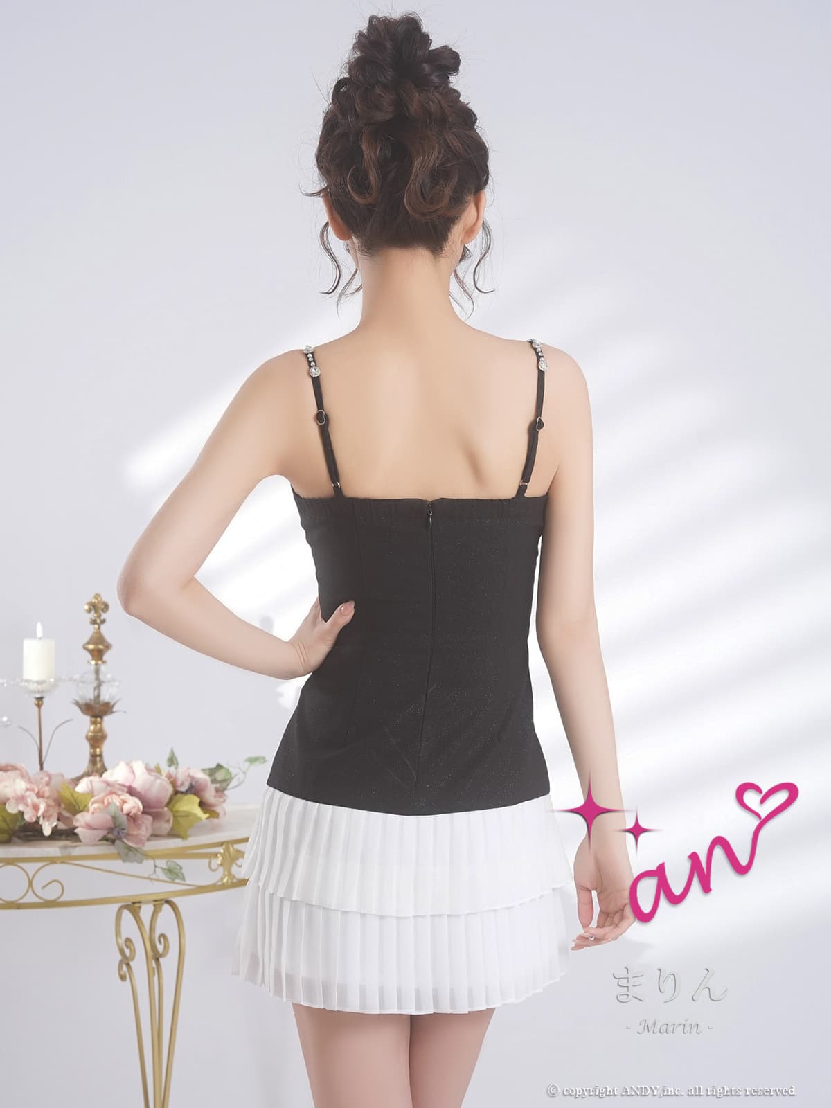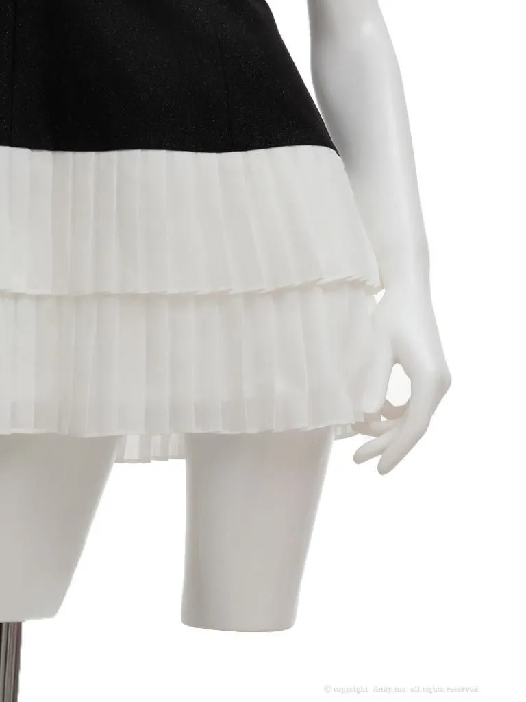 XSサイズあり【an/アン】キャミソール/ ビジューストラップ/ バストジップ/ ティアード/ プリーツ/ フレア/ ミニドレス/ キャバドレス[OF05] [AOC4053-BxW-2601]