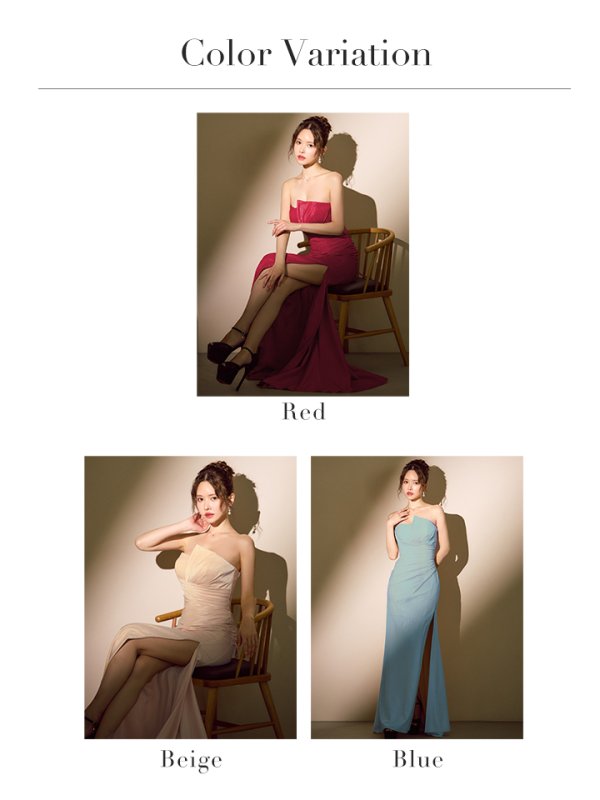 ロングスリットから美脚を覗かせ、シンプルながらも洗練された女性らしさを引き出す一着です。