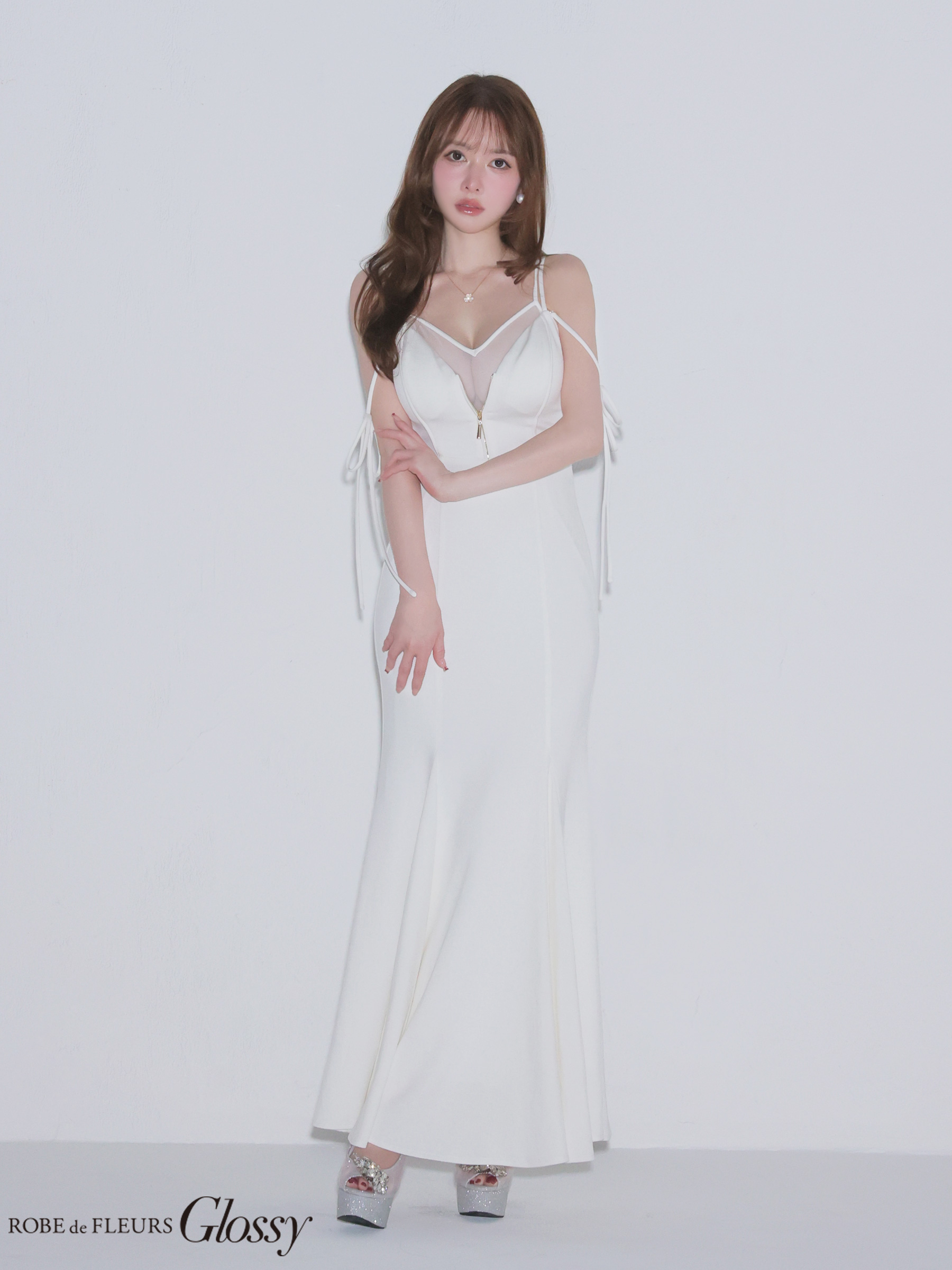【Glossy/グロッシー】シアー/ ドッキング/ フロントジップ/ マーメイド/ ロング/ キャバドレスlong[OF08] [GL4341-W-2601]