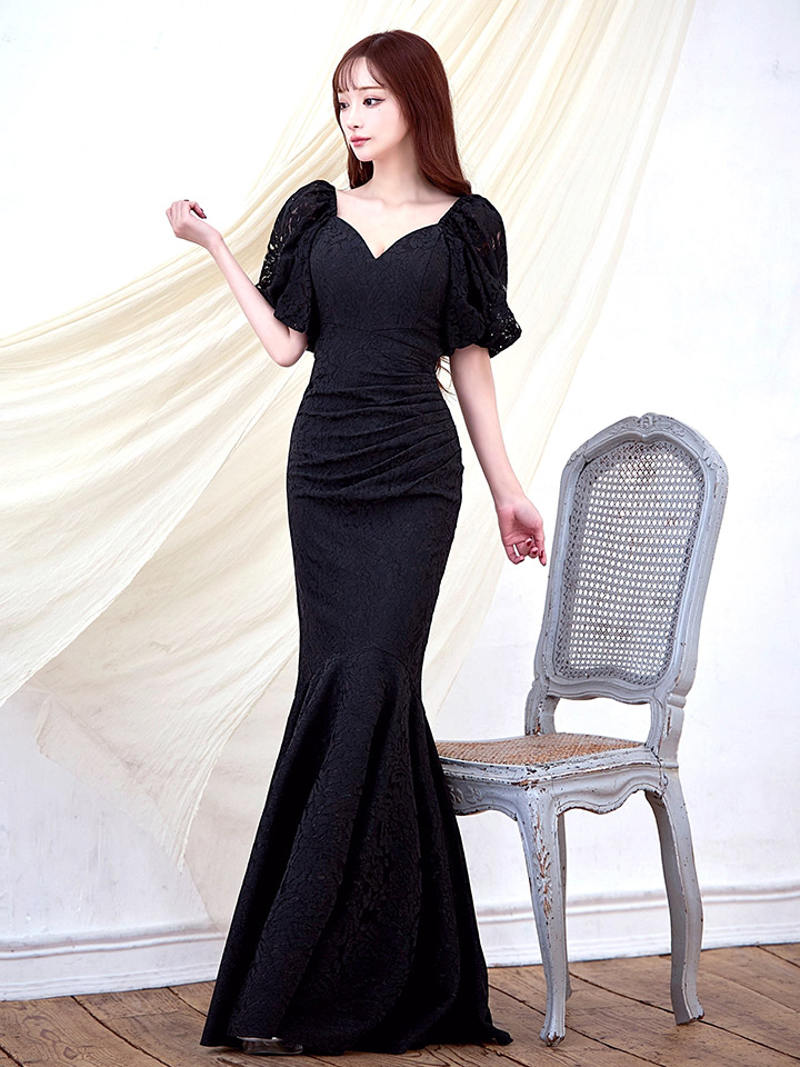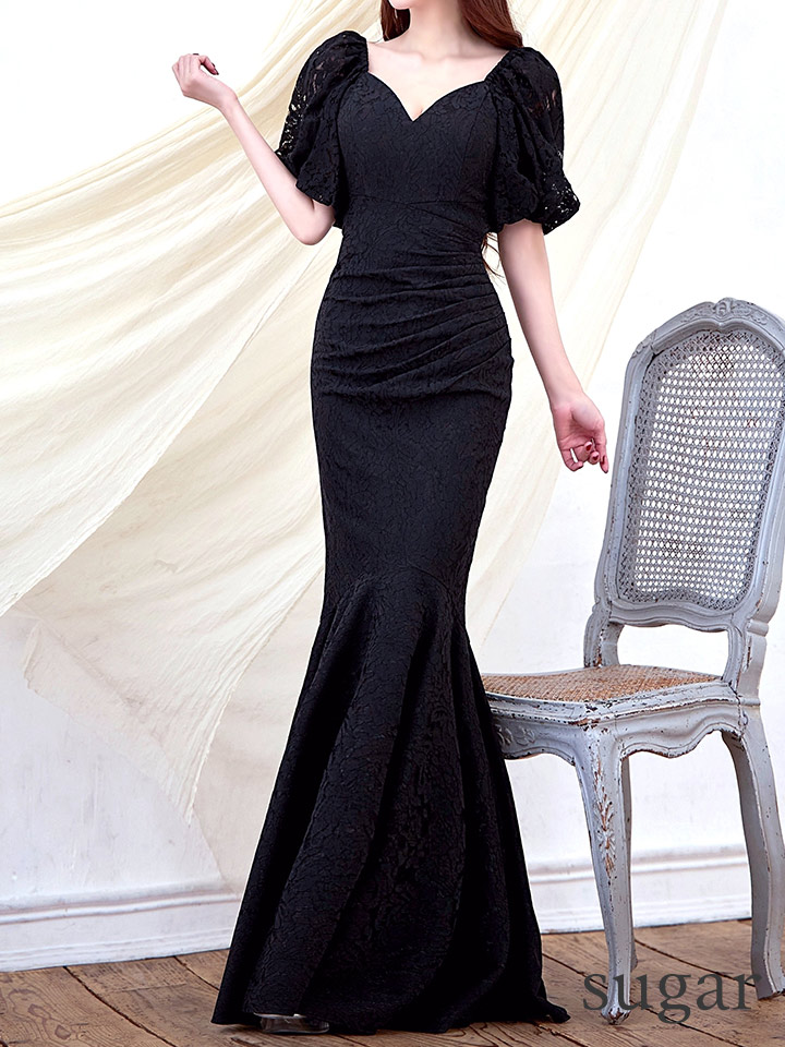 Lサイズあり【UNA VALERIE / ウナヴァレリェ】 総レース/ 半袖/ 袖あり/ サイドタック/ マーメイド/ ロングドレス long[OF05] [V60168L-B-S2601]