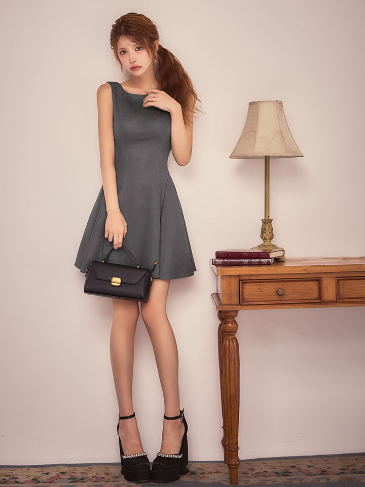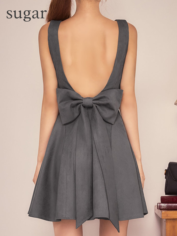 大胆なバックオープンデザインで後ろ姿を魅力的に演出するフレアミニドレス♡