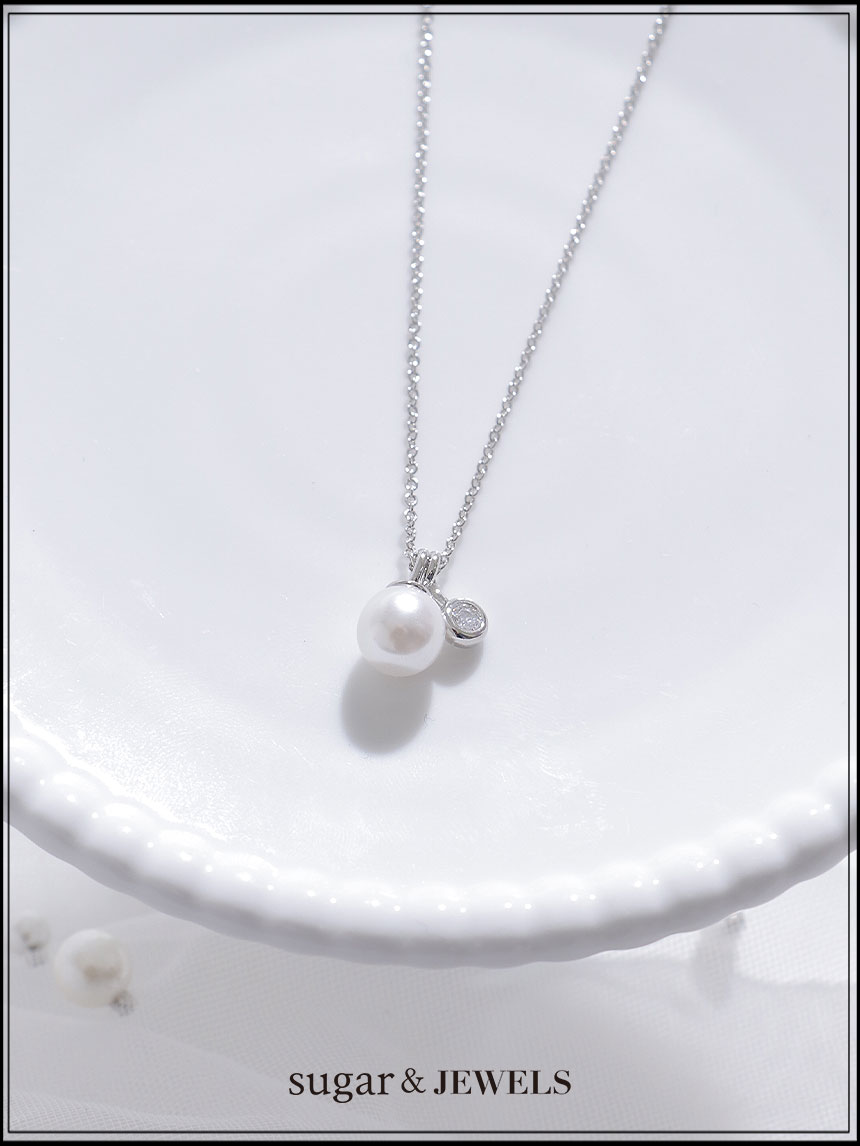 パールとビジューが輝くネックレス。