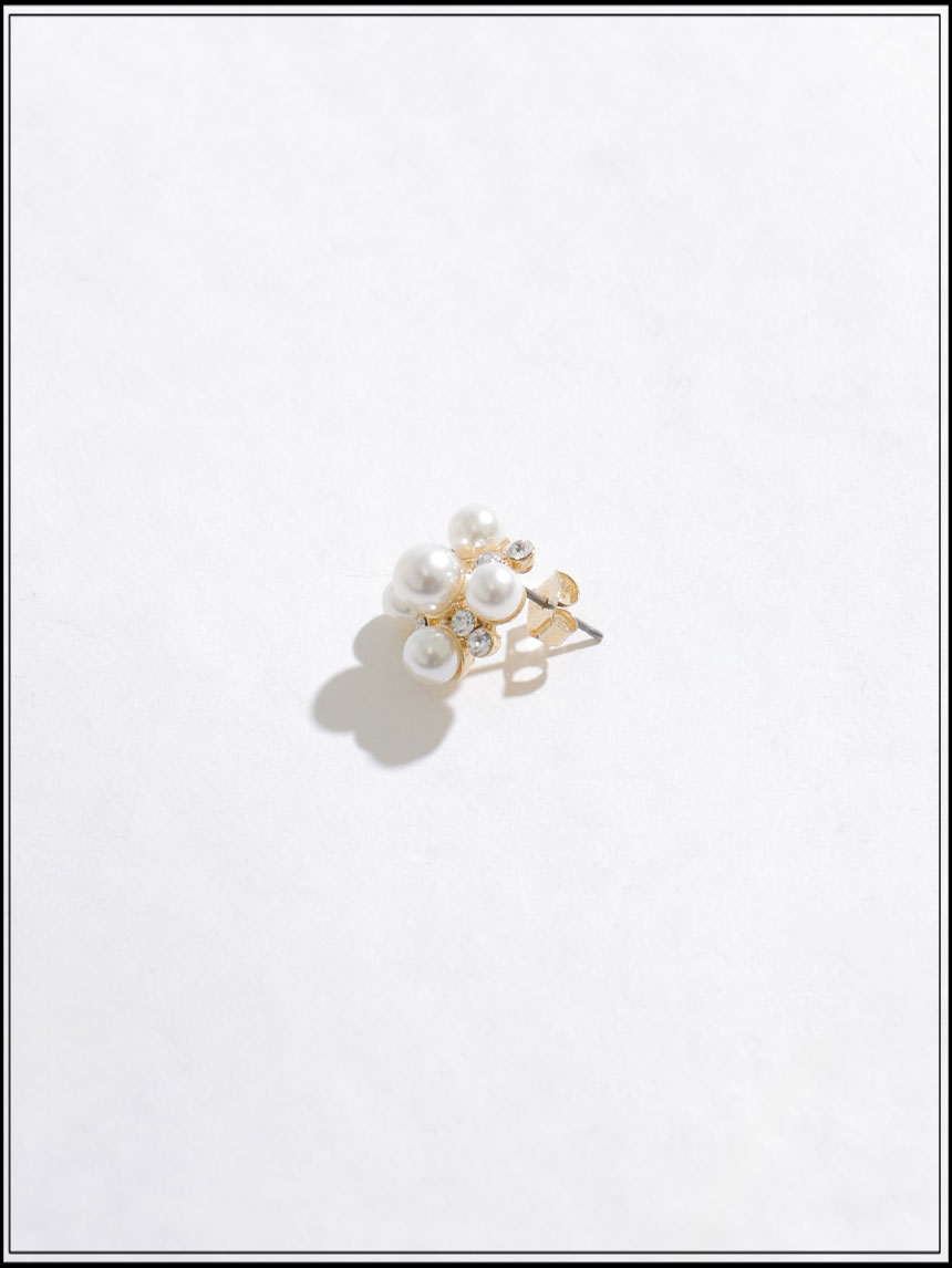 複数のパールとビジューを組み合わせたピアス。