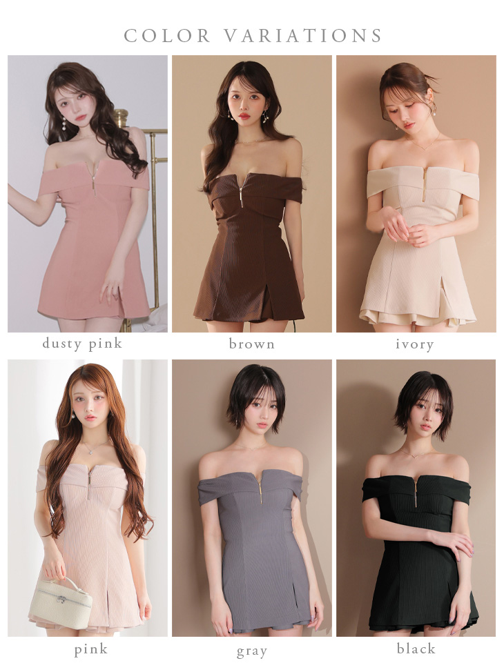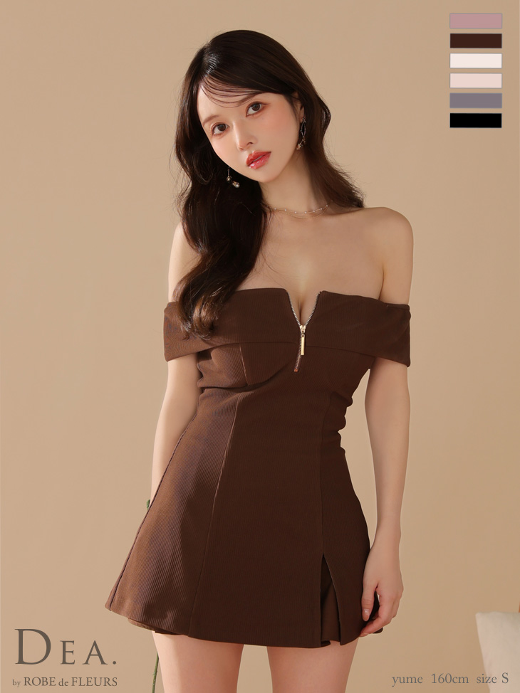 XSサイズあり【DEA./ディア】バストジップ/ オフショル/ セットアップ/ フレア/ ミニドレス/ キャバドレス[OF08] [DE4217-DusP-2601]