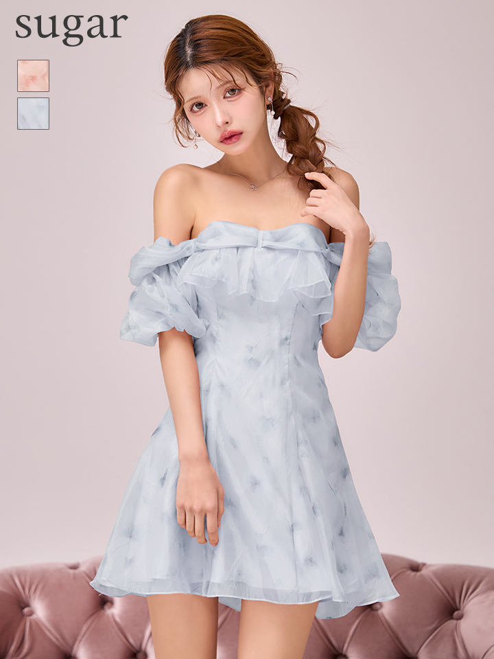 XSサイズあり【ANGEL R/エンジェルアール】シフォン/ オフショル/ 肩紐付き/ 2way/ バストフリル/ 花柄/ フレア/ ミニドレス/ キャバドレス[OF2] [AR26802-P-S260128]