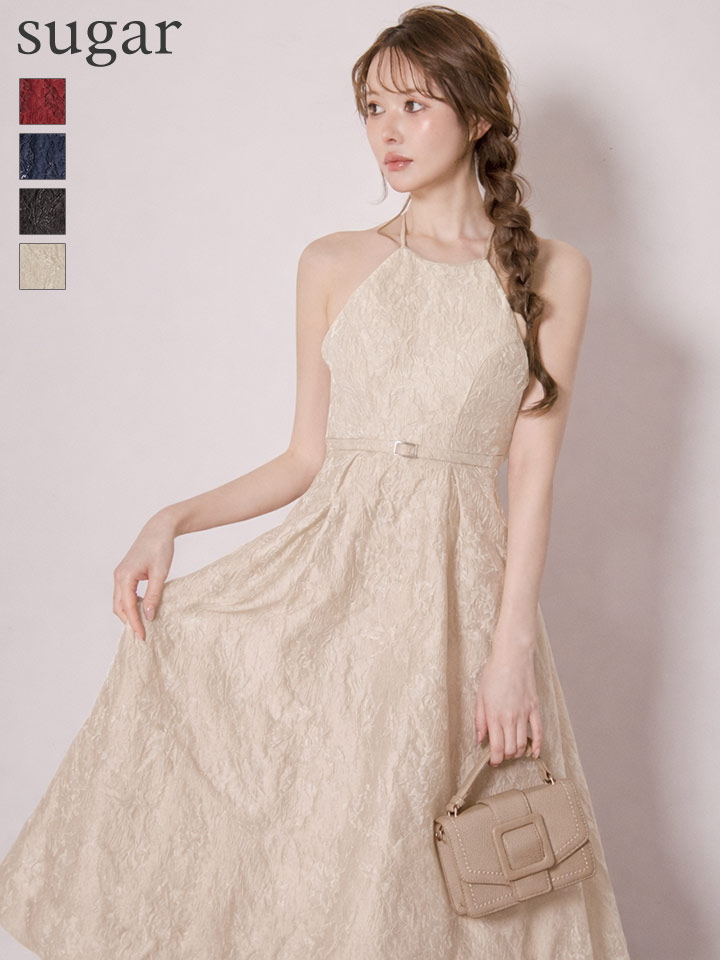 XS-Lサイズあり【DEA./ディア】ラメ/ ジャガード/ アメスリ/ フレア/ ミディアムドレス/ キャバドレス long[OF08] [DE4332-BE-S251107]