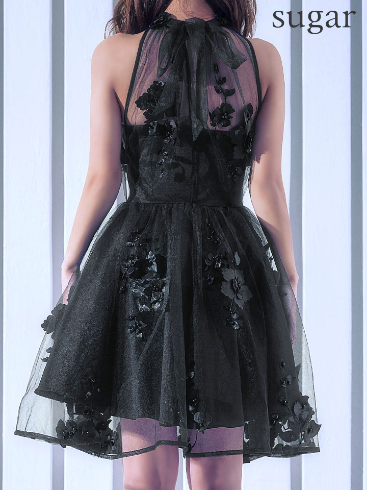 XS-Lサイズあり【Donia Quinn / ドニアクイーン】 立体フラワー/ アメスリ/ シアー/ バックリボン/ Aライン/ フレア/ ミニドレス/ キャバドレス[OF05] [Q60155Y-B-S2601]
