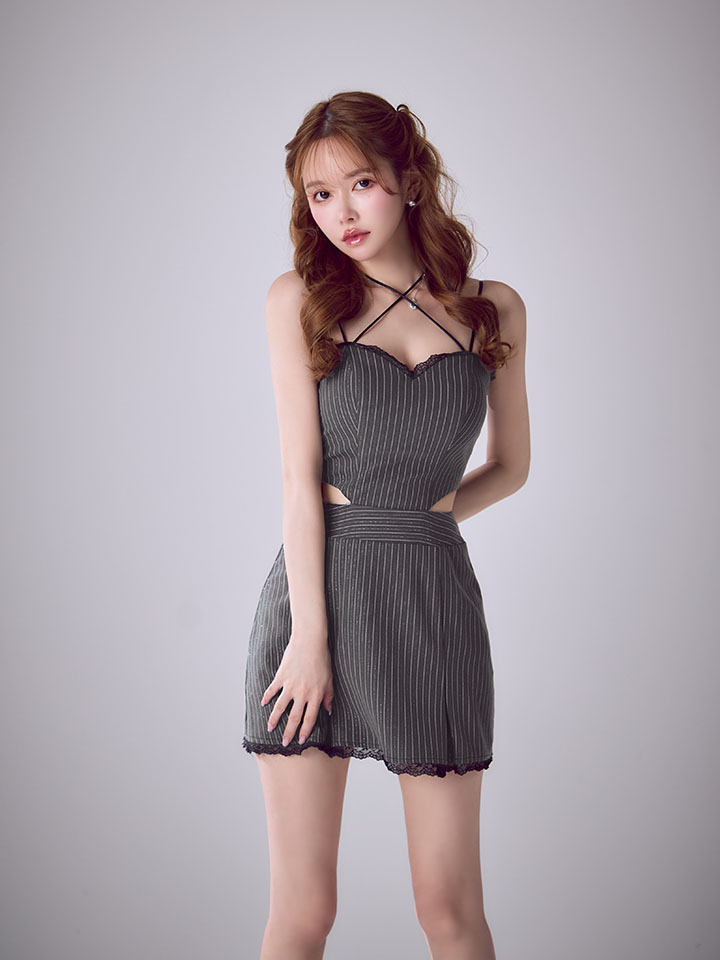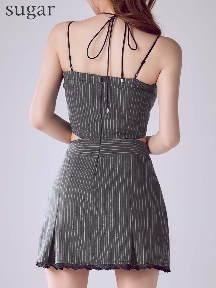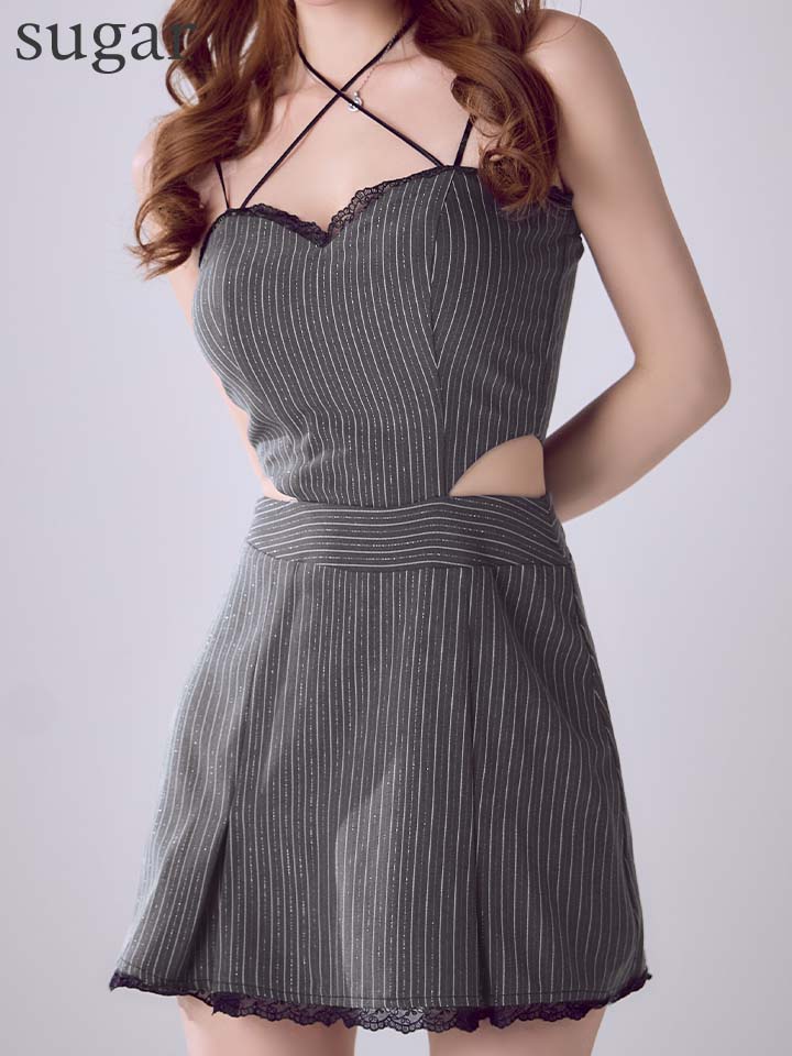 XSサイズあり【IRMA/イルマ】スカラップレース/ リボンチョーカー/ キャミソール/ ウエストカットアウト/ フレア/ ミニドレス/ キャバドレス[OF2A] [55110-IR-Bstripe-S260129]