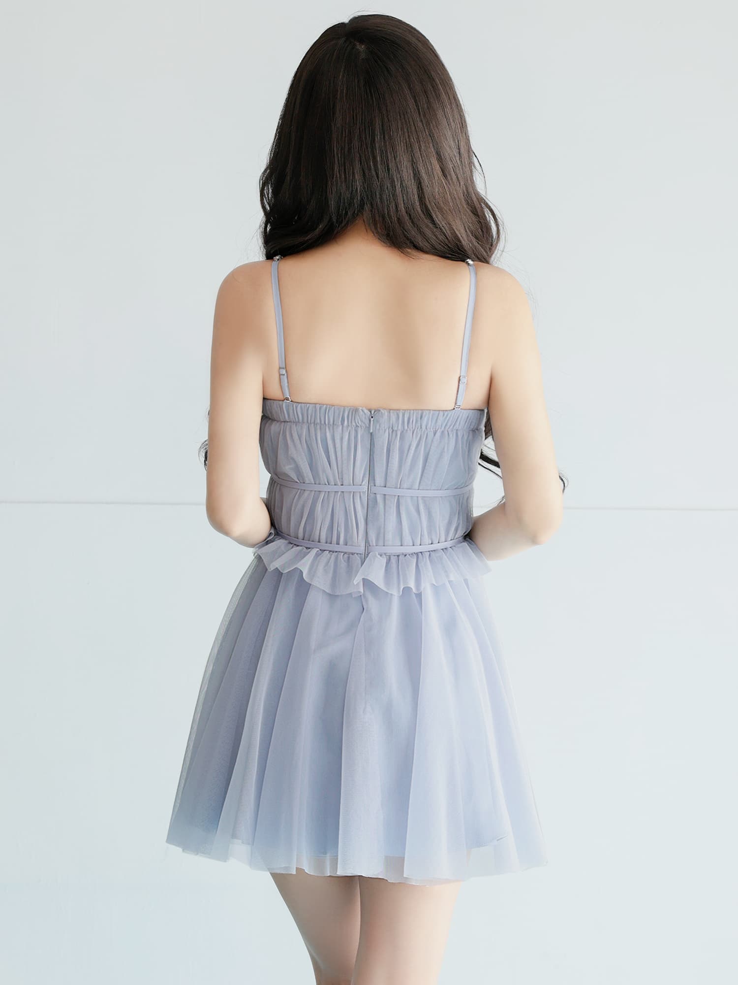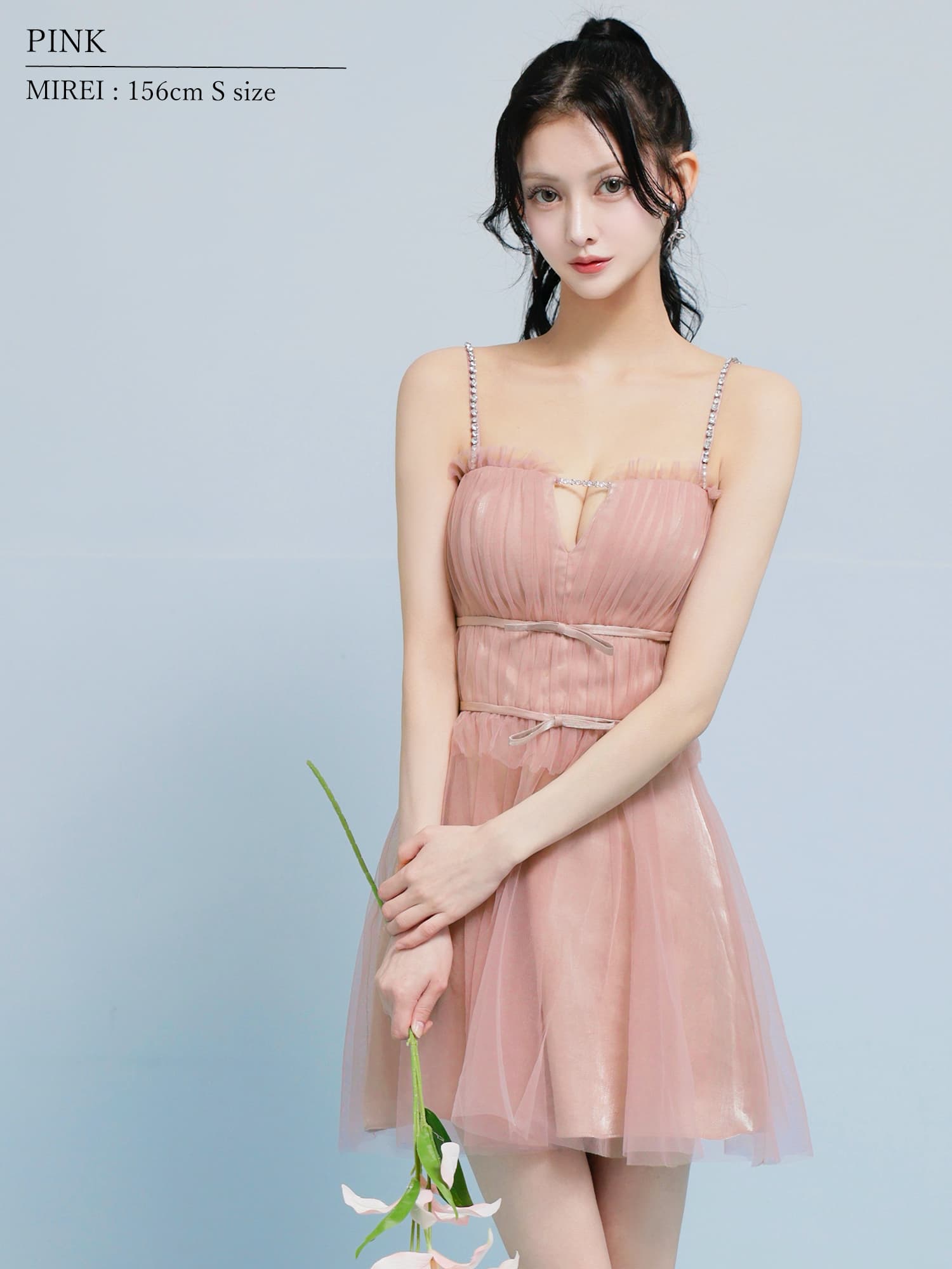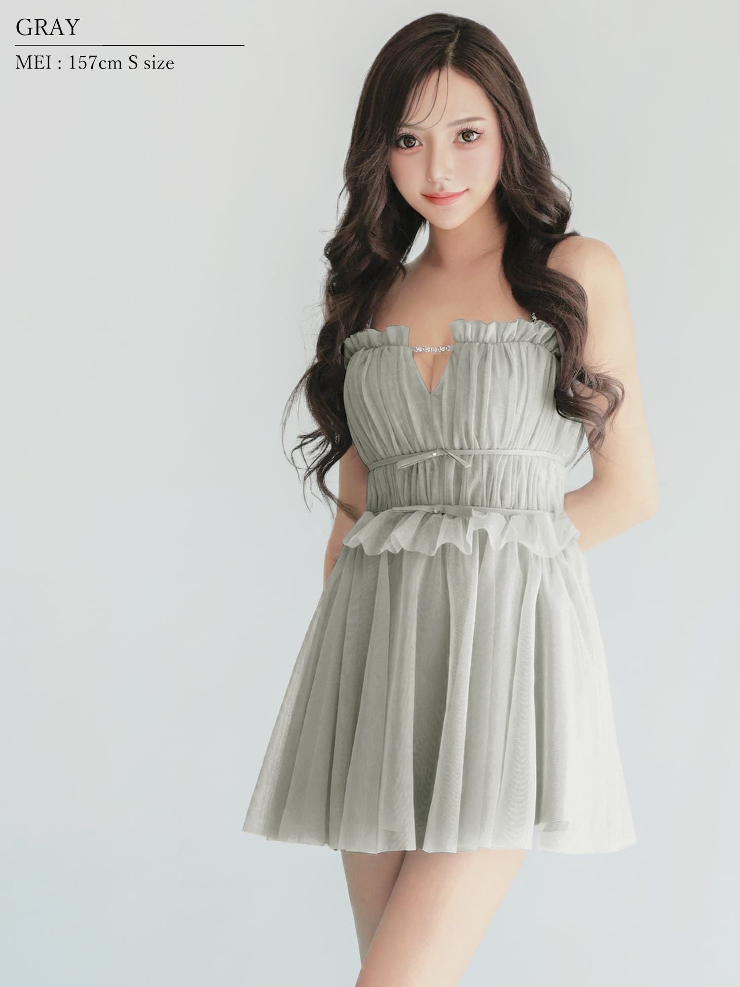 XSサイズあり【ANGEL R/エンジェルアール】ベアトップ/ フリル/ ビジューチェーン/ ウエストリボン/ フレア/ マイクロミニドレス/ キャバドレス[OF2] [AR26804-P-S260128]