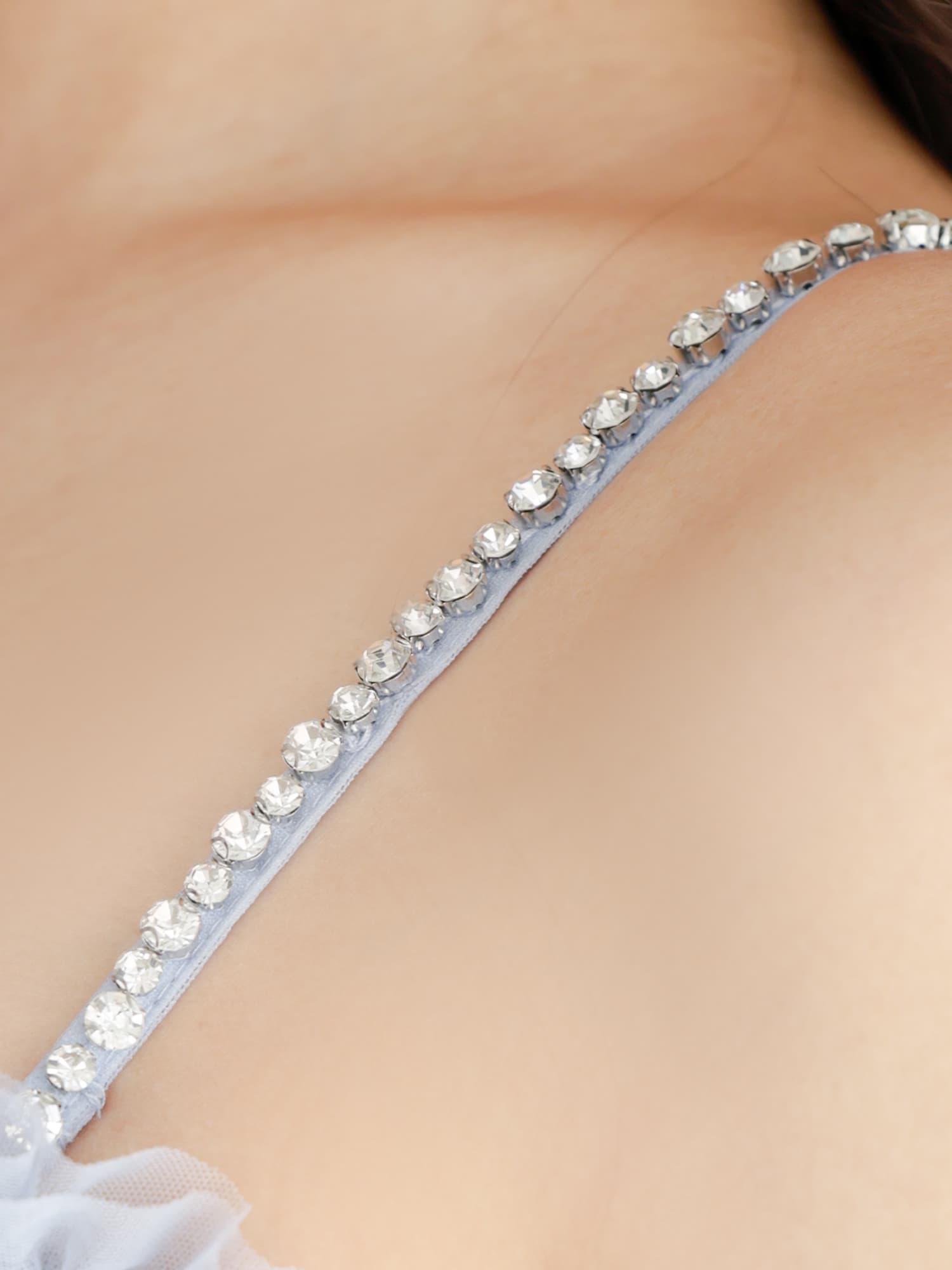 インナー部分にはビジューをあしらい、動くたびにさりげない輝きをプラスしています。