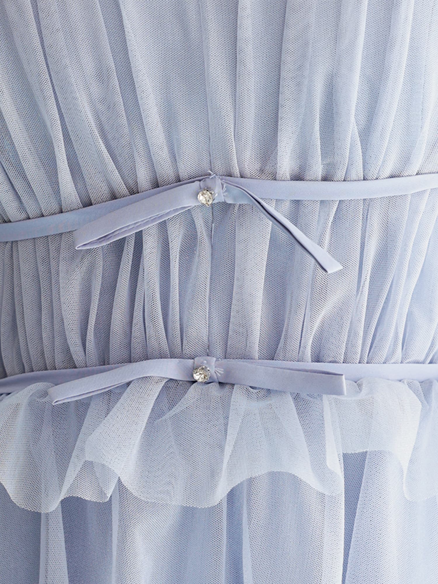 胸元に繊細なプリーツを施し、立体感と柔らかな表情を演出したデザイン。