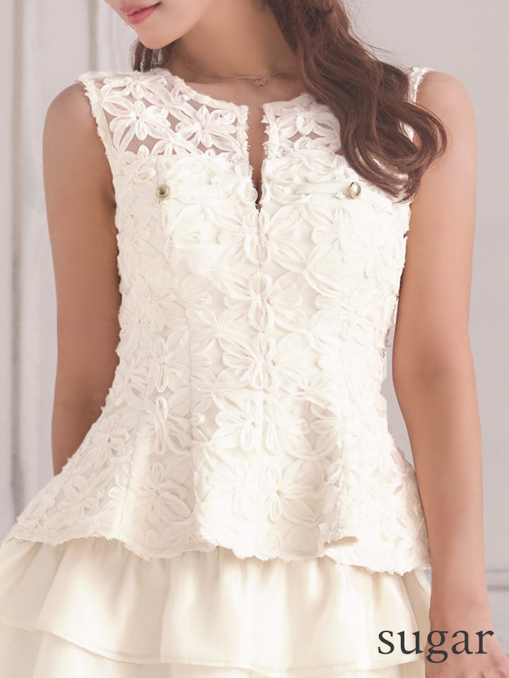 #キャバクラ #キャバ嬢 #キャバクラドレス #立体花柄 #レース #シフォン #フレア #ノースリーブ