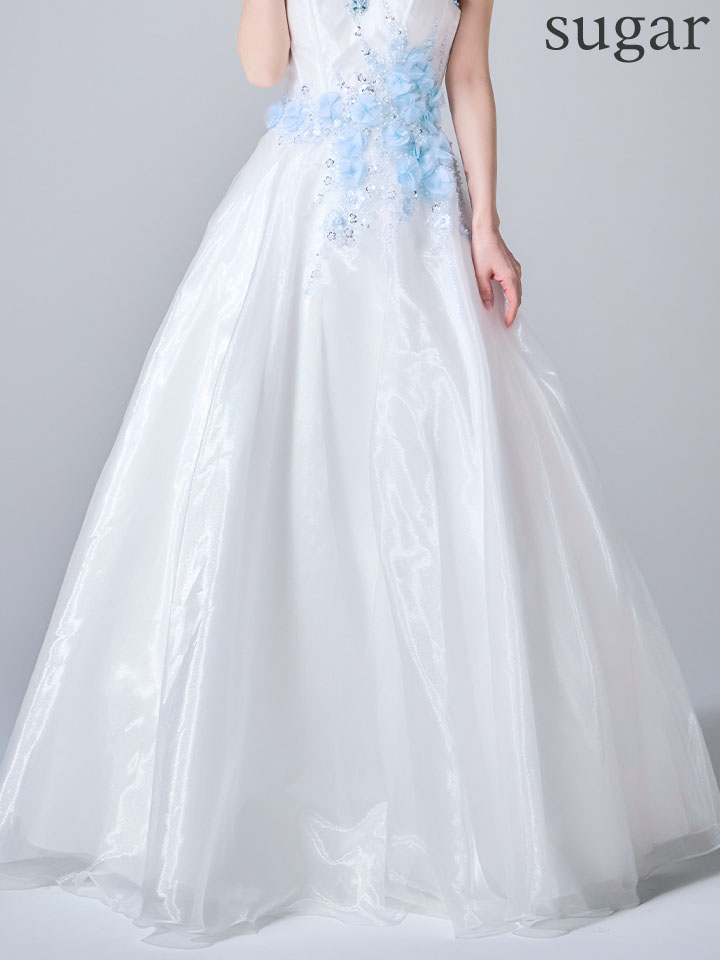 【JEAN MACLEAN/ジャンマクレーン】ビーズ刺繍/ ビジュー/ スパンコール/ 立体フラワー/ チュール/ ベアトップ/ フレア/ Aライン/ プリンセス/ ロングドレス/ キャバドレス long[OF2A] [51005-JM-BL-S260130]