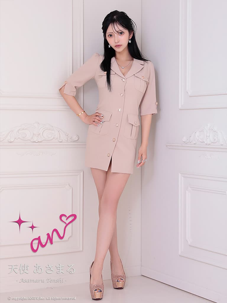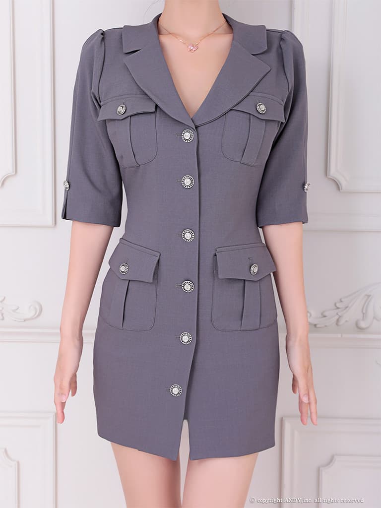 XSサイズあり【an /アン】ジャケット風/ 襟付き/ ボタン/ ポケット/ 袖あり/ 五分袖/ タイト/ ワンカラー/ ミニドレス/ キャバドレス[OF05] [AOC4071-GY-2601]