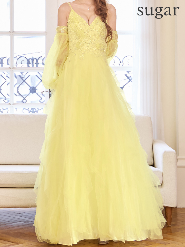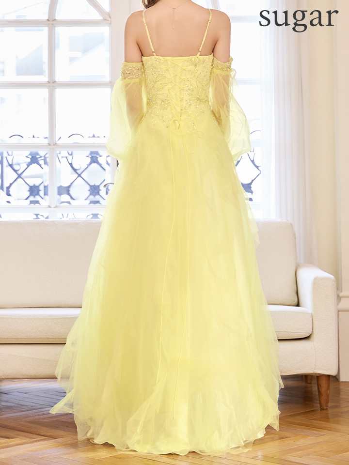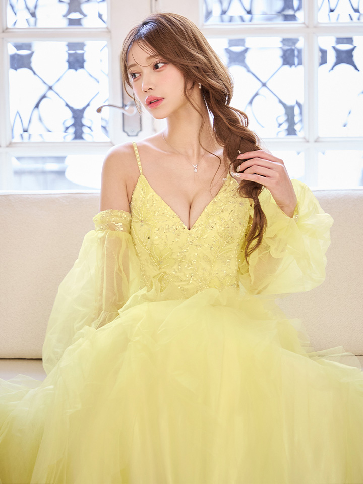 【JEAN MACLEAN/ジャンマクレーン】2way/ 袖あり/ パフスリーブ付き/ キャミソール/ ビーズ刺繍/ チュール/ Aライン/ フレア/ プリンセス/ ロングドレス/ キャバドレス long[OF2A] [51768-JM-Y-S260130]