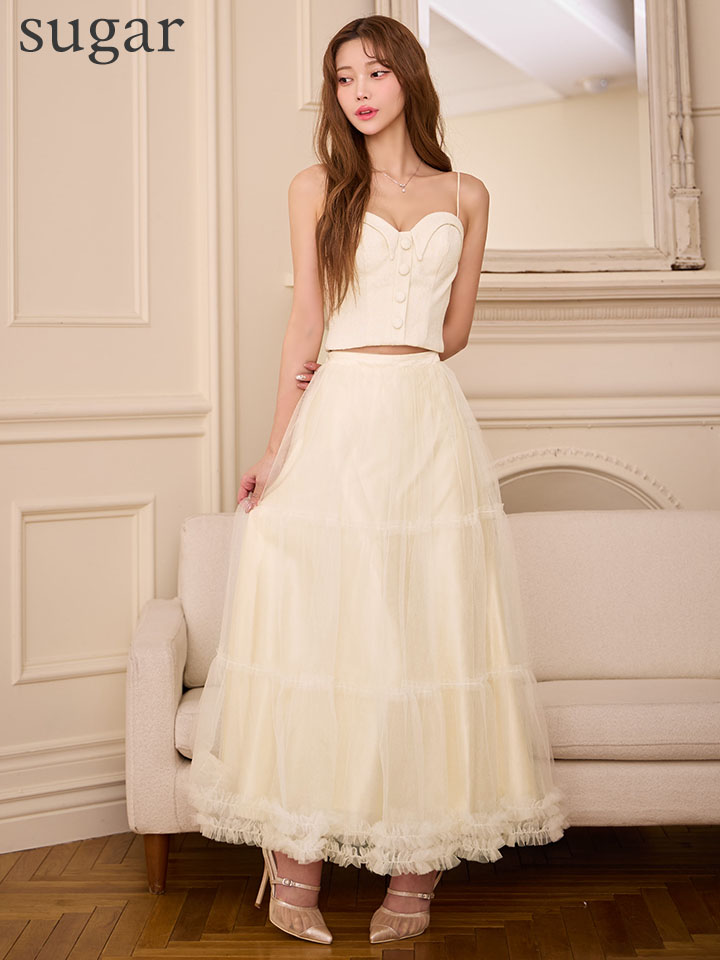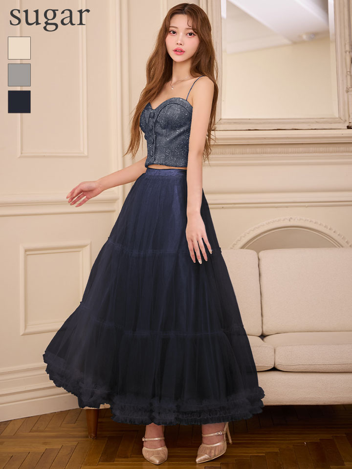 華やかなティアードスカートが目を惹くセットアップドレス♡