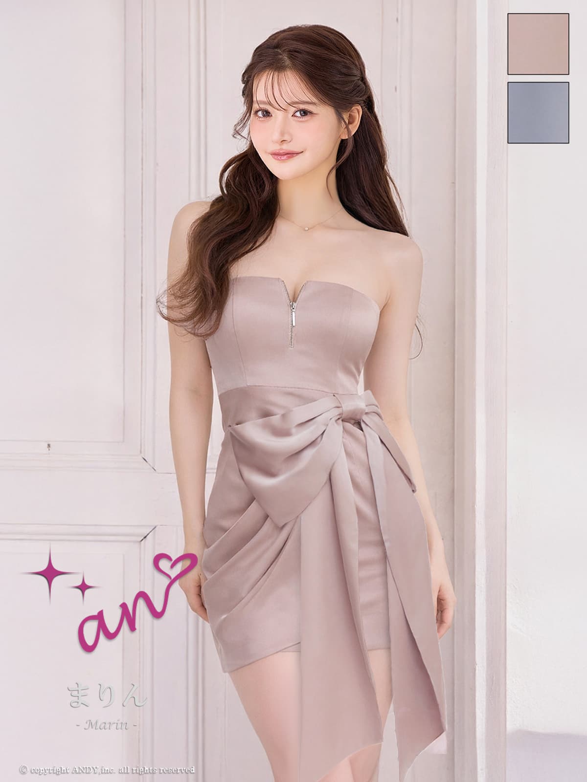 XSサイズあり【an /アン】ベア/ バストジップ/ ビッグリボン/ ハイウエスト/ ワンカラー/ タイト/ ミニドレス/ キャバドレス[OF05] [AOC4061-PBE-2602]