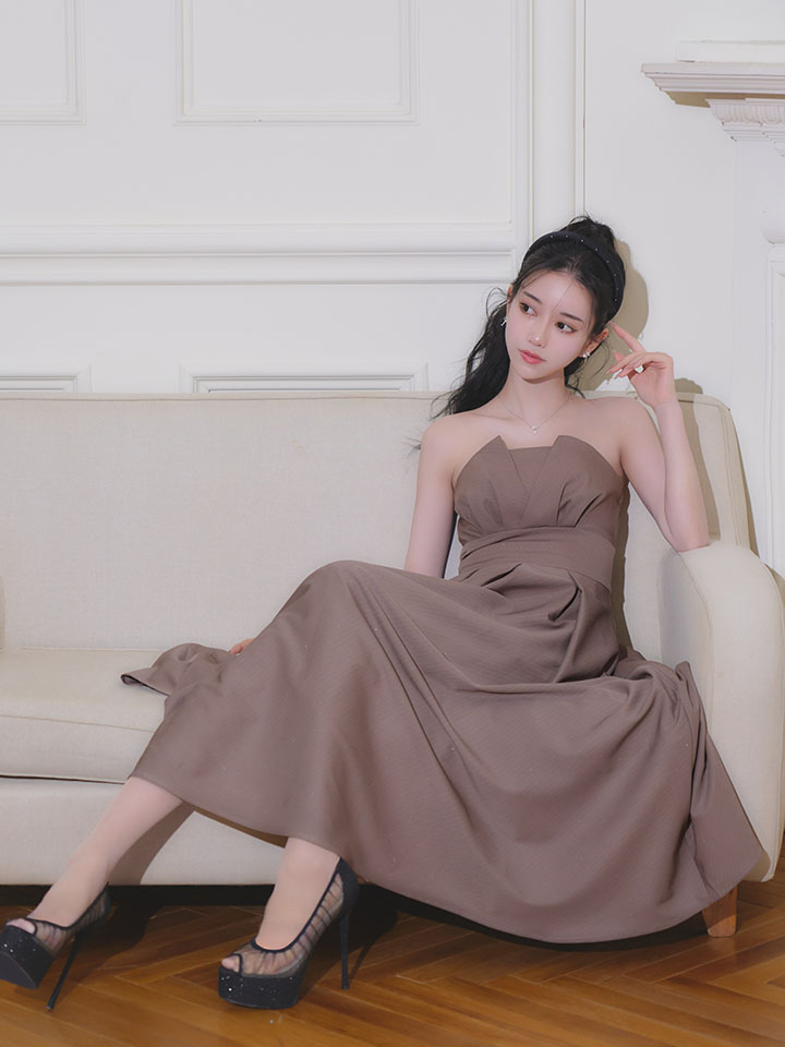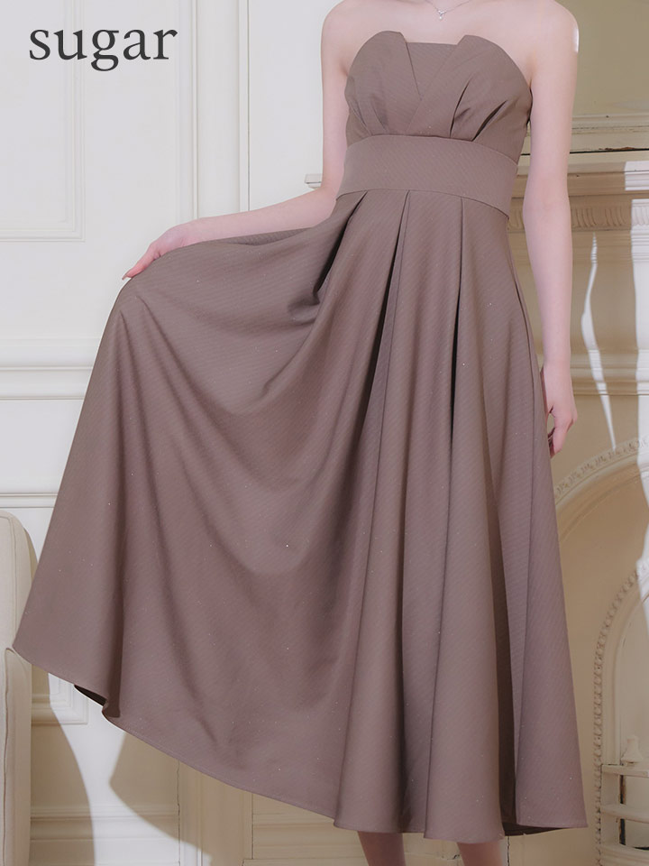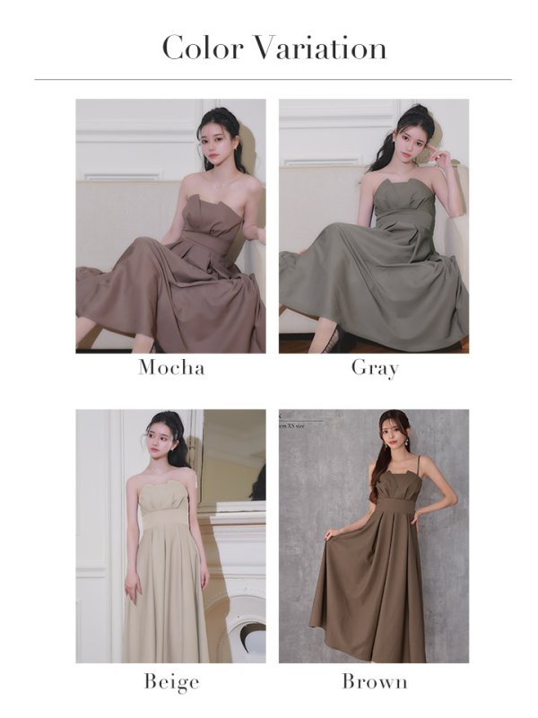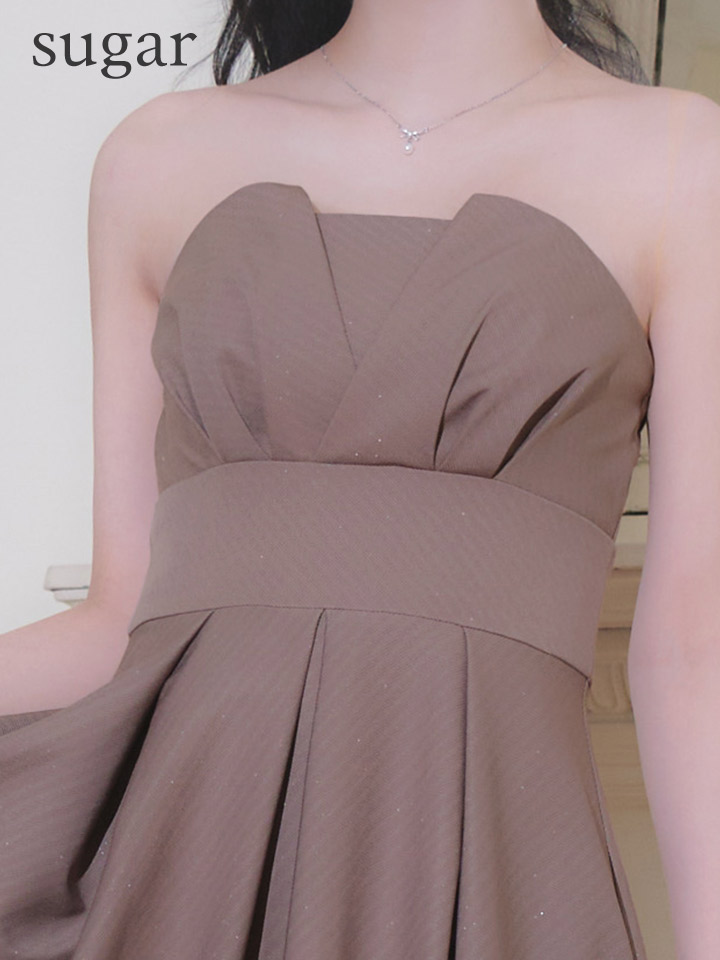 XSサイズあり【Veautt/ヴュート】【OF05】べアトップ/ バストタック/ ウエストマーク/ プリーツ/ フレア/ ワンピース/ ロングドレス/ キャバドレス [VT082602-GY-S260131]