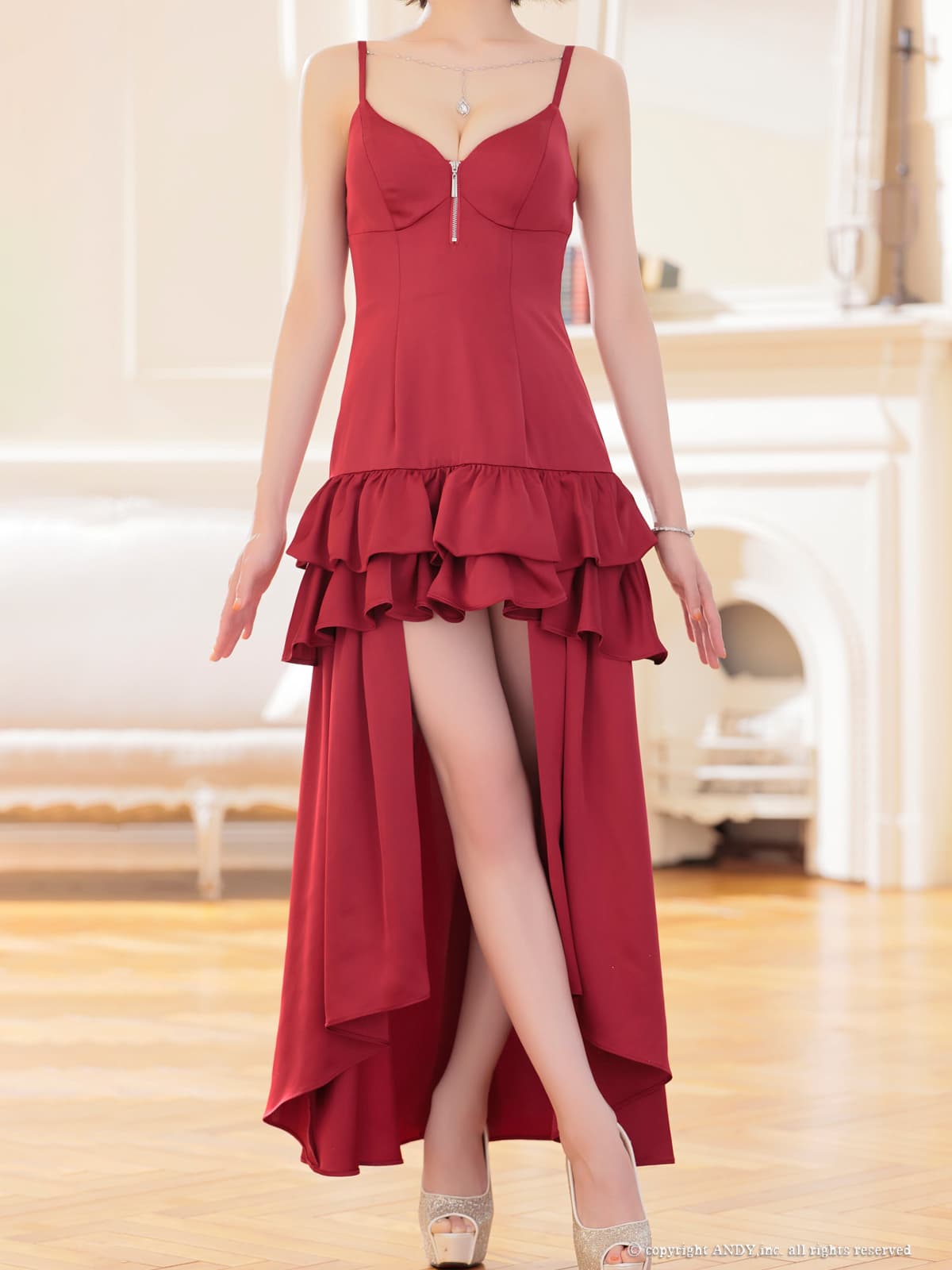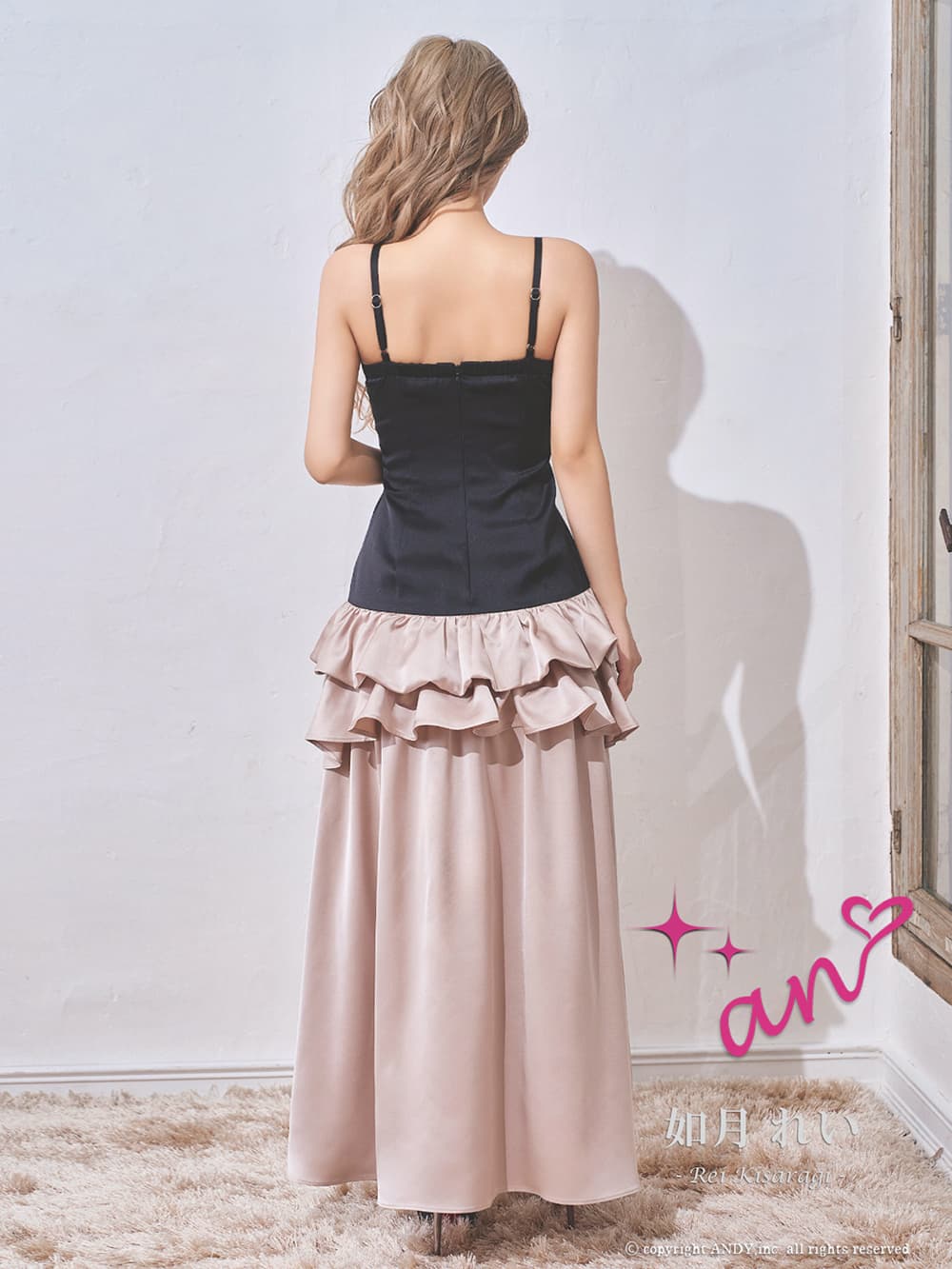 XSサイズあり【an /アン】 バストジップ/ チャーム付き/ キャミソール/ ティアードフリル/ フレア/ テールカット/ ロングドレス/ キャバドレス[OF05] [AOC4028-BxPBE-S260131]