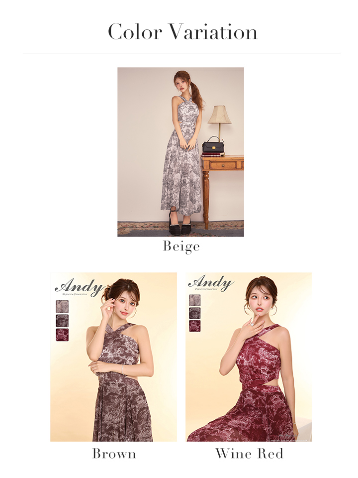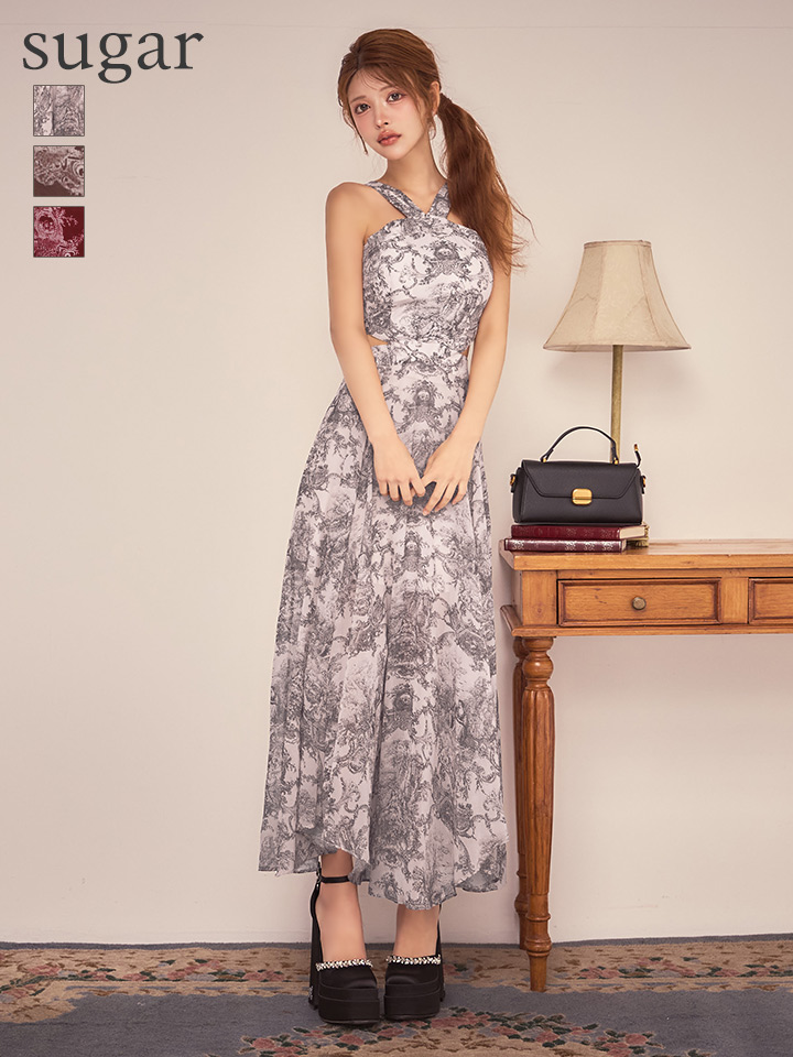 XSサイズあり【ANDY/アンディ】ホルターネック/ クラシカルプリント/ ウエストカット/ シフォン/ フレア/ マキシ丈/ ワンピース/ ロングドレス/ キャバドレスlong[OF05] [ON3015-BE-S260131]