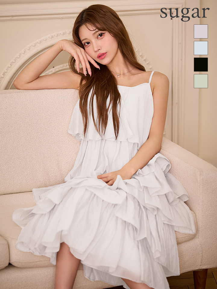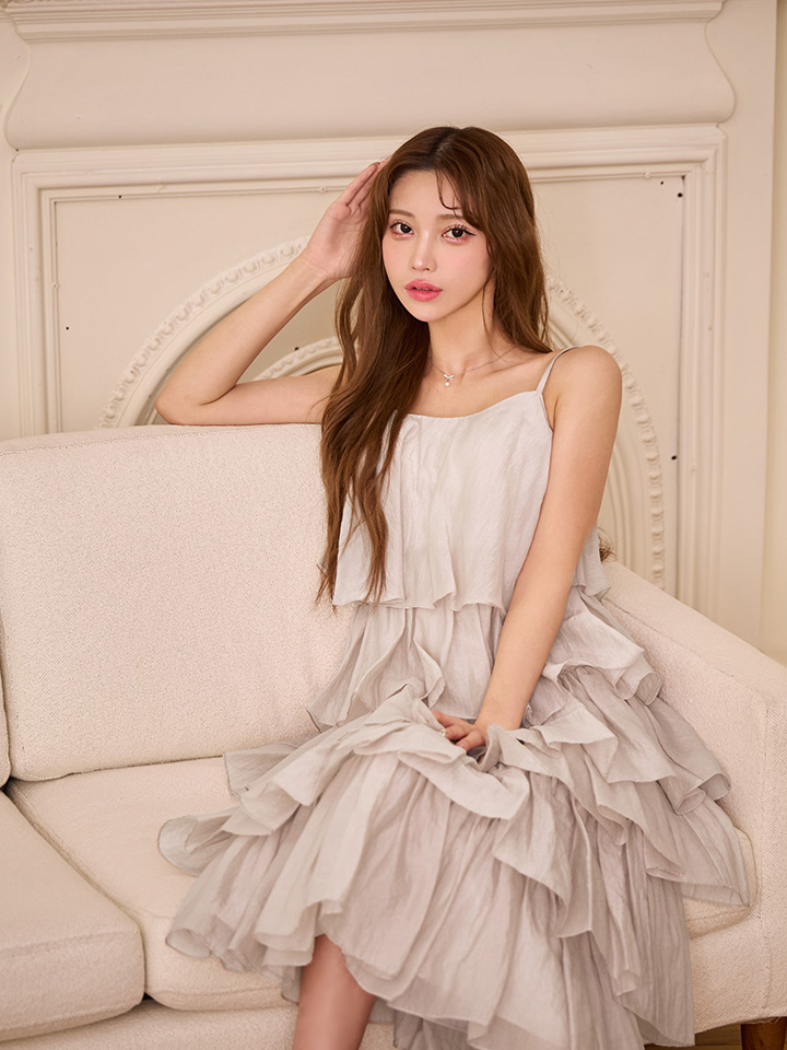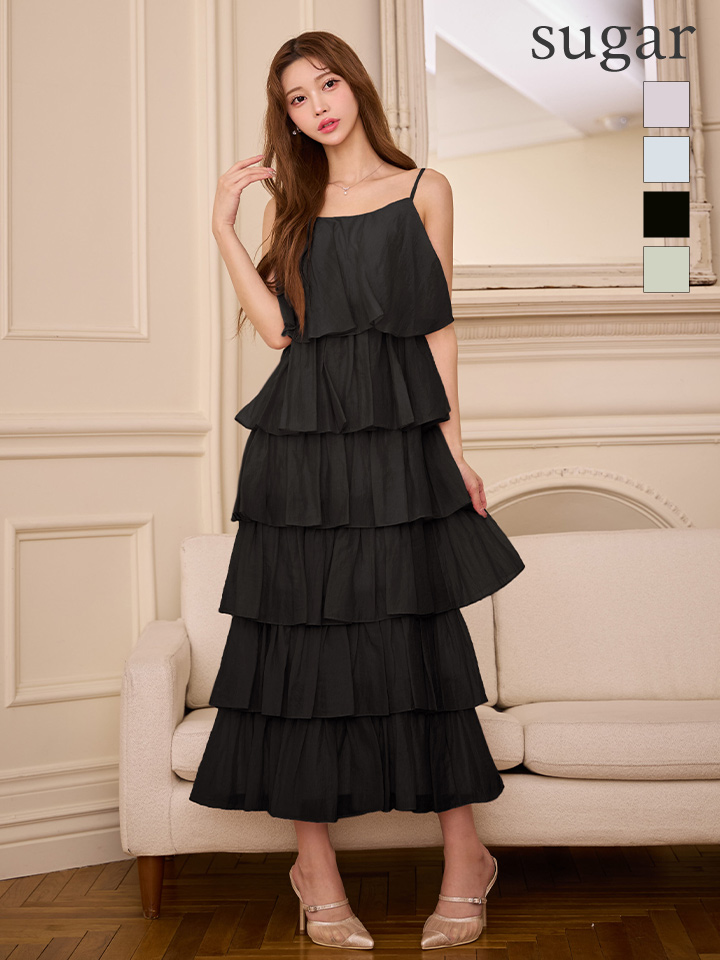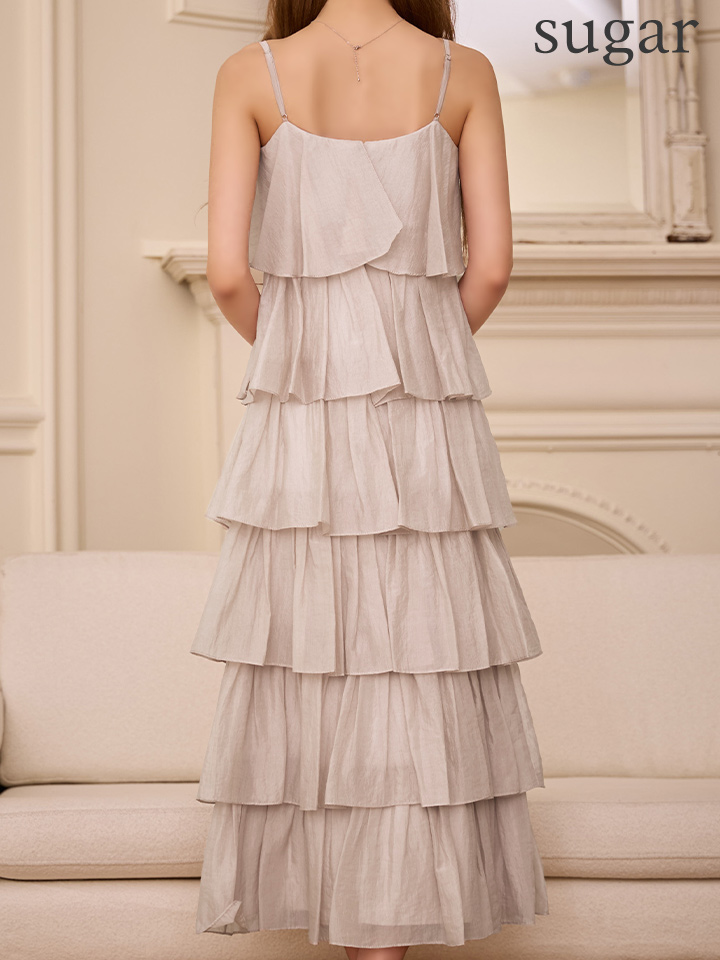 繊細なティアードデザインが目を惹くロングドレス。
