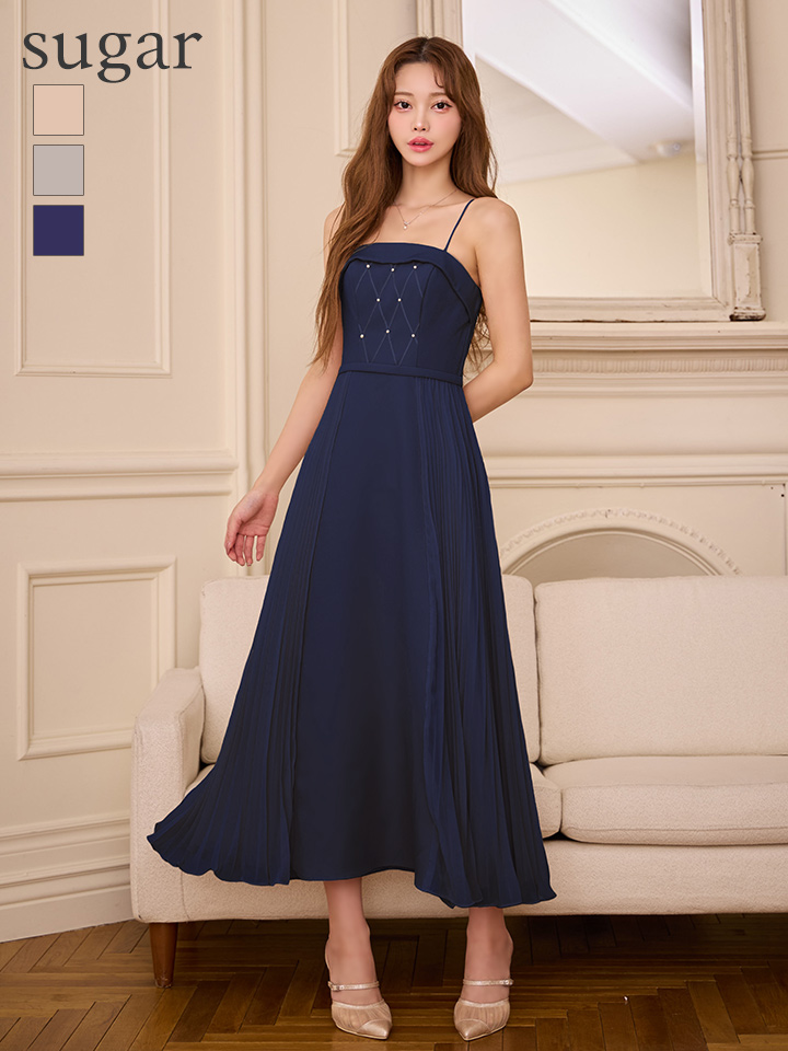 胸元のダイヤ柄デザインとサイドプリーツが上品さをプラス。