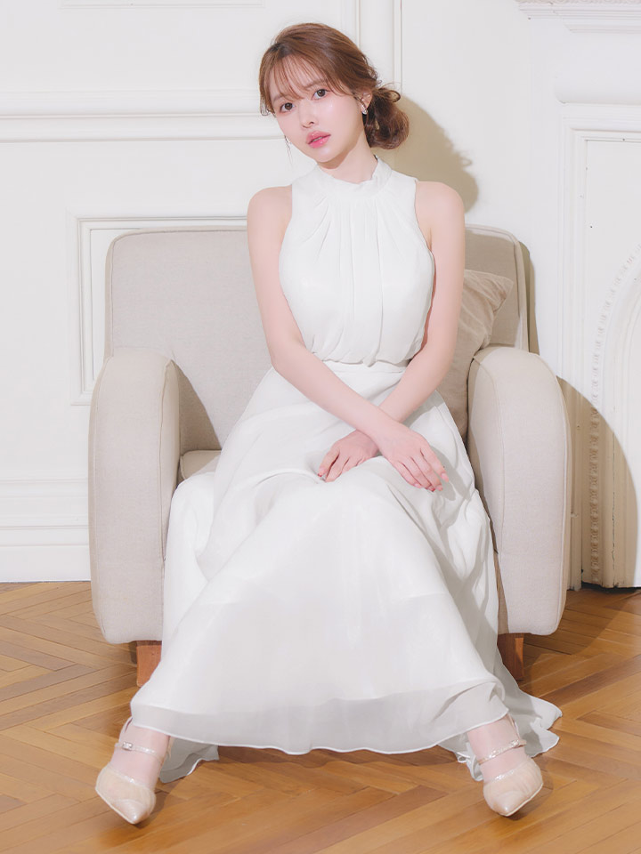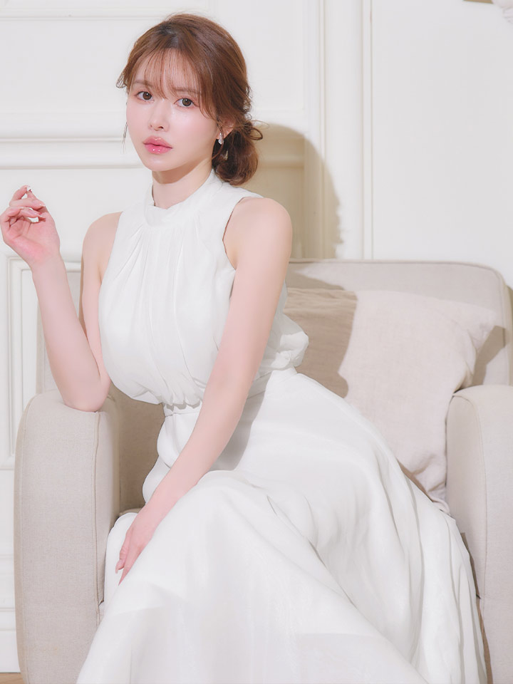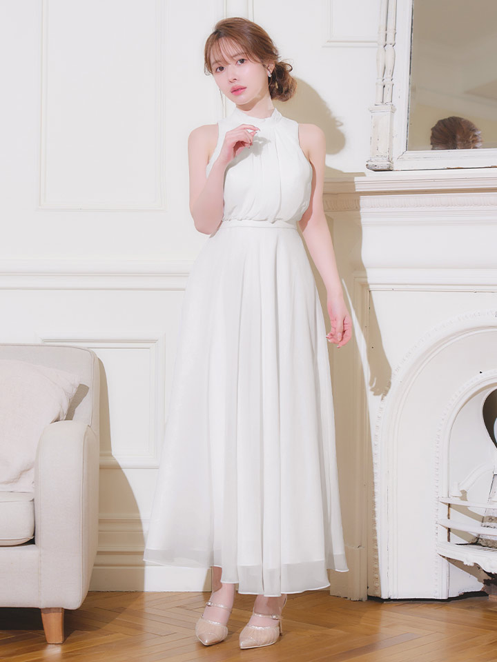 sugarオリジナルカラーあり【JEAN MACLEAN/ジャンマクレーン】ハイネック/ ネックリボン/ シフォン/ ノースリーブ/ フレア/ ワンピース/ ロングドレス/ キャバドレス long[OF2A] [61025-JM-BLGY-S260131]