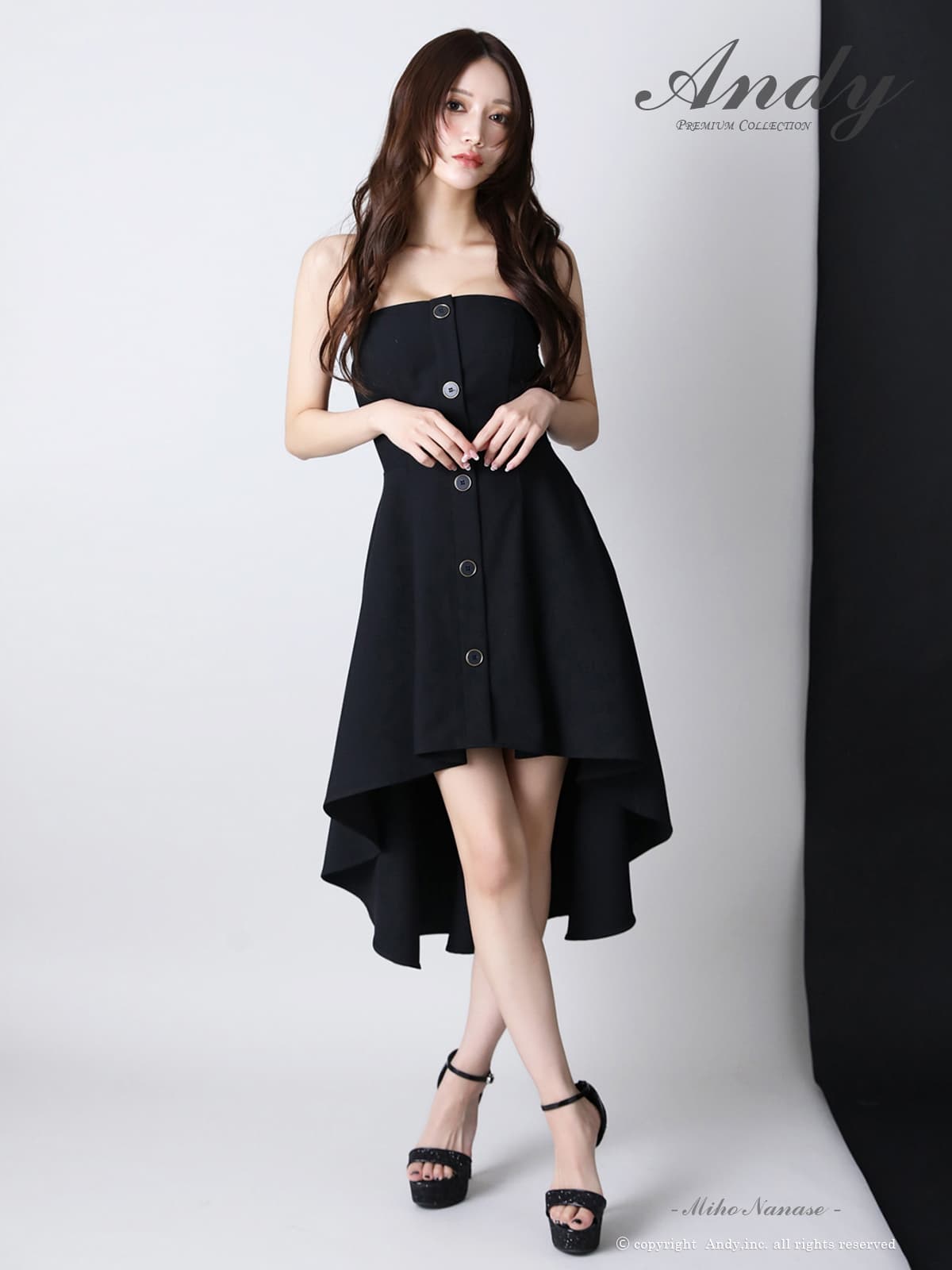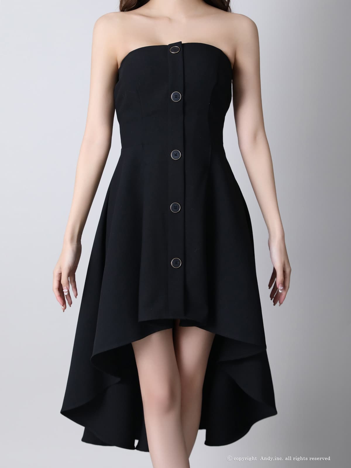 XSサイズあり【ANDY/アンディ】フロントボタン/ ワンカラー/ ベア/ テールカット/ Aライン/ ミモレ丈/ フレア/ ワンピース/ ミディアムドレス/ キャバドレス[OF05] [ON3057-BE-2602]