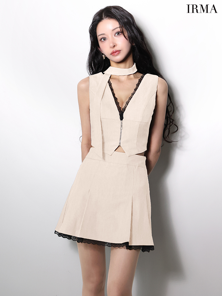 sugarオリジナルカラー・XSサイズあり【IRMA/イルマ】ノースリーブ/ フロントジップ/ ボックスプリーツ/ レース/ セットアップ/ フレア/ ミニドレス/ キャバドレス【HC02】 [61015-IR-SandBE-2602]