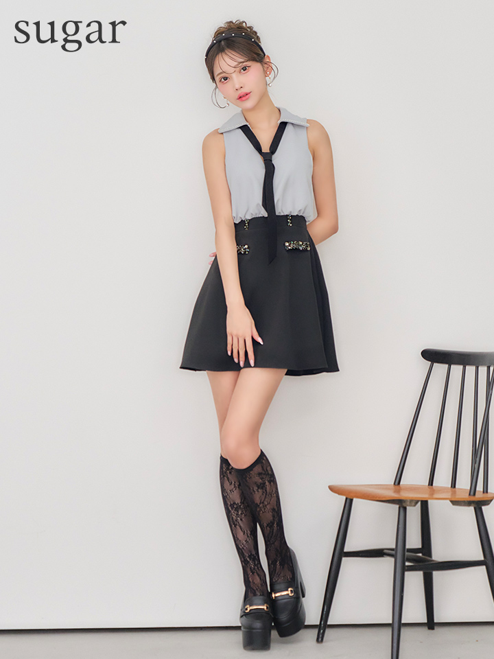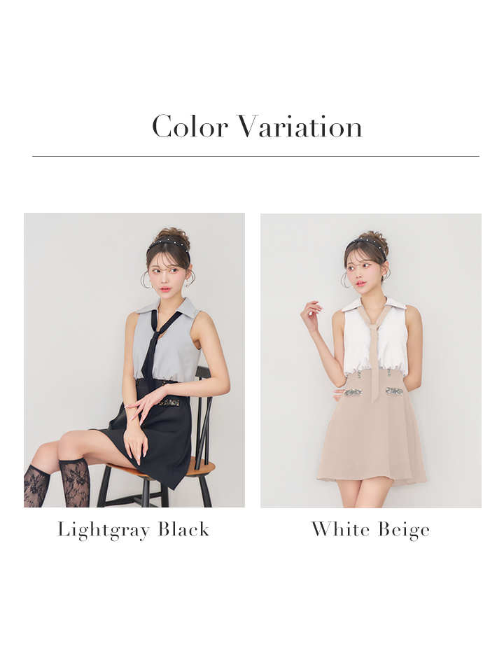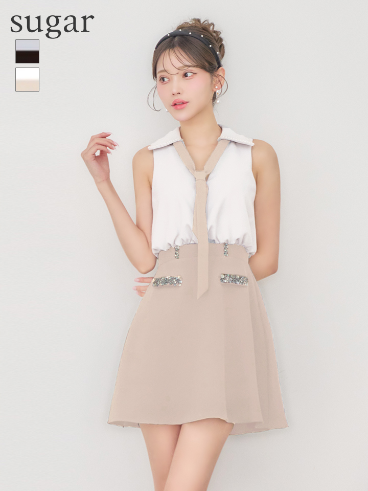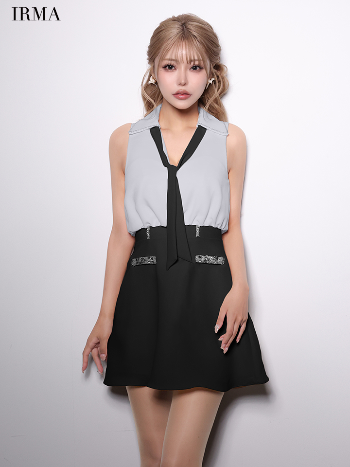 【予約商品/2月下旬発送予定】XSサイズあり【IRMA/イルマ】ボウタイ/ バイカラー/ ビジュー/ ノースリーブ/ フレア/ ミニドレス/ キャバドレス[OF2A] [61044-IR-WxBE-S260204]