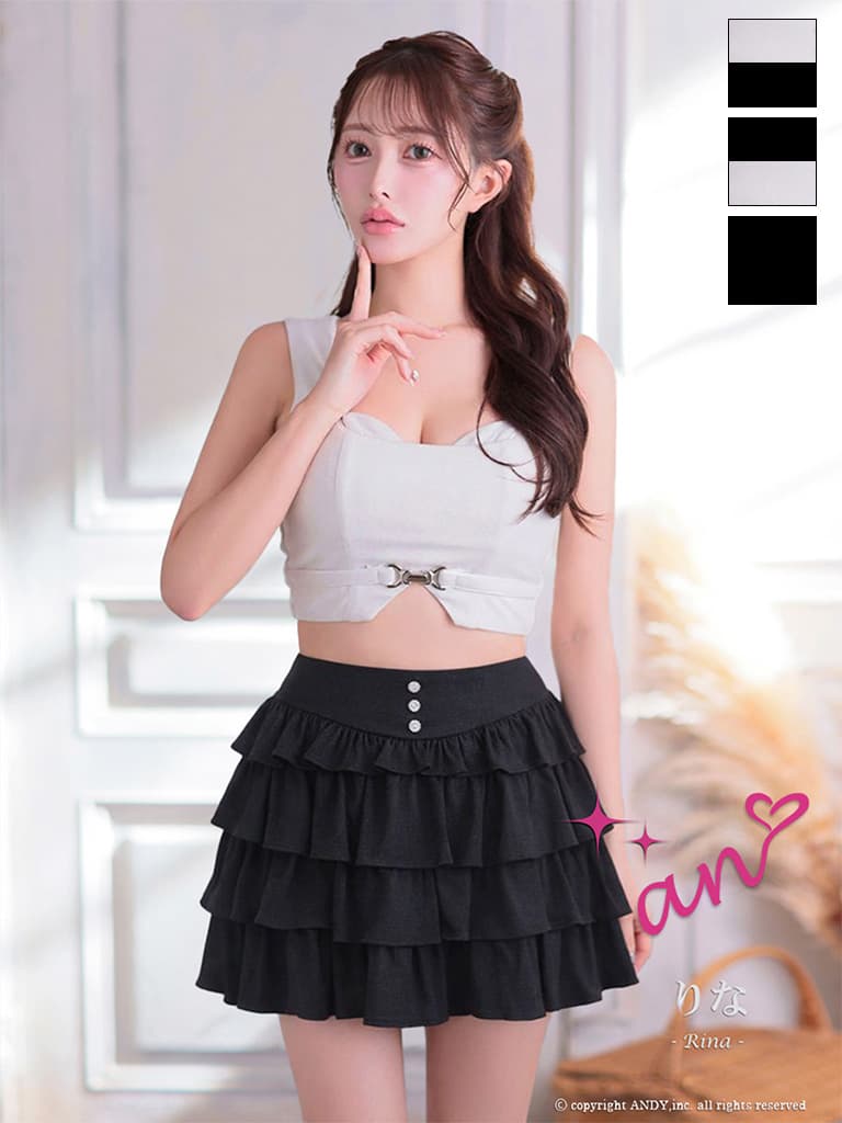 XSサイズあり【an /アン】 セットアップ/ バイカラー/ ビジューボタン/ ノースリーブ/ ストレッチ/ ベルト/ フリル/ ティアード/ フレア/ ミニドレス/ キャバドレス[OF05] [AOC4064-B-2602]