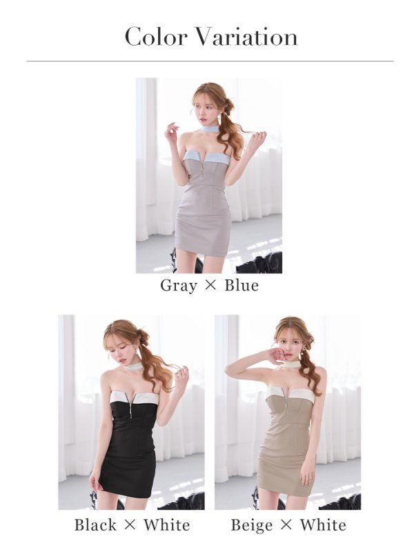 XSサイズあり【Glossy/グロッシー】2way/ チョーカー風/ バストジップ/ タイト/ ミニドレス/ キャバドレス[OF08]【一部予約商品/2月上旬発送予定】 [GL4108-GYxBL-S260204]