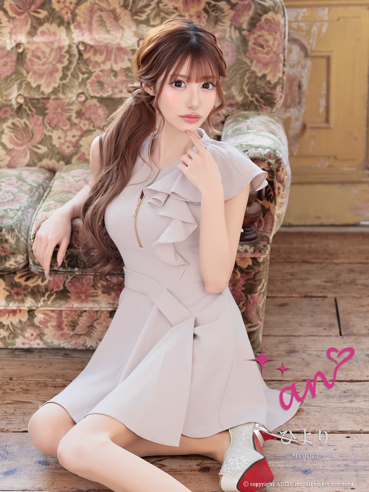 XSサイズあり【an /アン】アシメデザイン/ フレアスリーブ/ ノースリーブ/ バストジップ/ ウエストタック/ フリル/ フレア/ Aライン/ ミニドレス/ キャバドレス[OF05] [AOC4059-BE-2602]