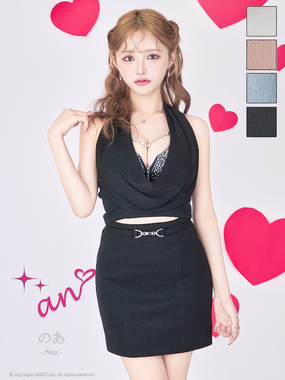 XSサイズあり【an /アン】バストチャーム付き/ ホルターネック/ ドレープ/ チュールリボン/ ラメ/ ラインストーン/ バストジップ/ ストレッチ/ タイト/ ミニドレス/ キャバドレス[OF05] [AOC4026-B-2602]