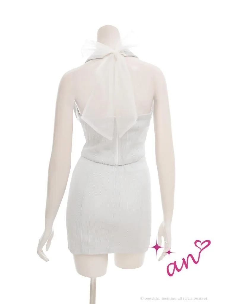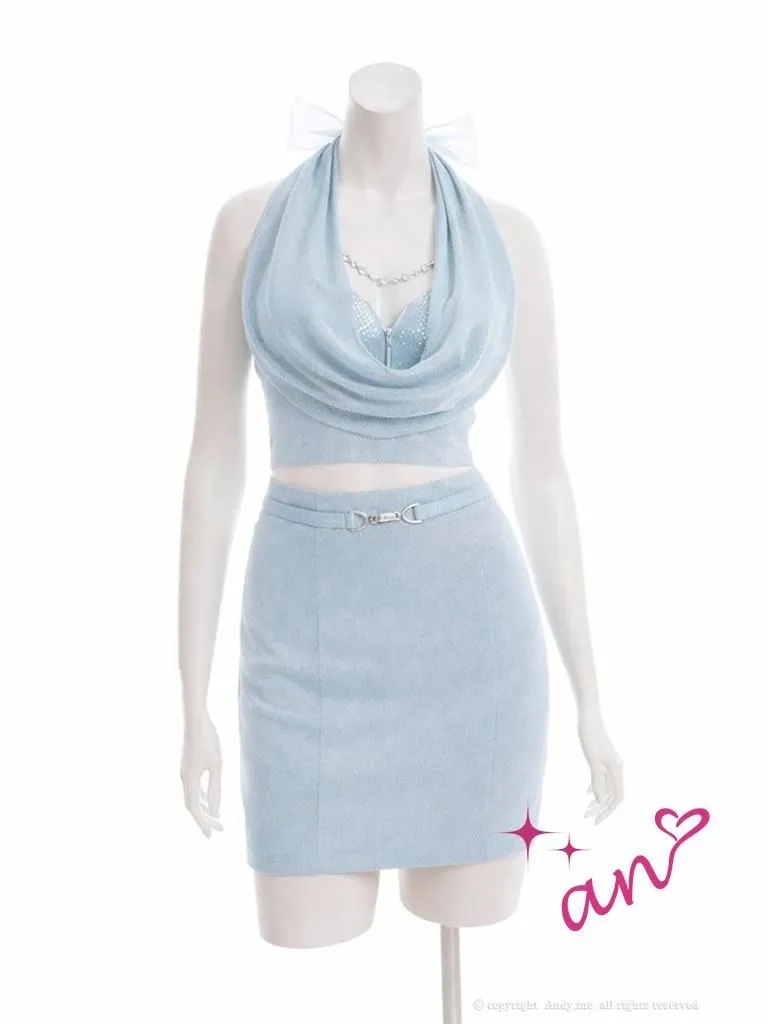 XSサイズあり【an /アン】バストチャーム付き/ ホルターネック/ ドレープ/ チュールリボン/ ラメ/ ラインストーン/ バストジップ/ ストレッチ/ タイト/ ミニドレス/ キャバドレス[OF05] [AOC4026-BL-2602]