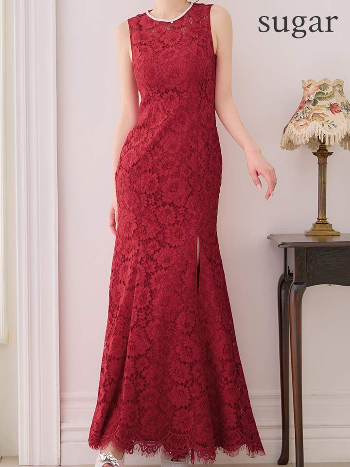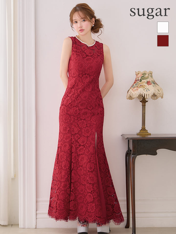 XS-Lサイズあり【ERUKEI エルケイ】マーメイド/ フラワーレース/ スリット/ ノースリーブ/ ワンピース/ ロングドレス/ キャバドレス long[OF2] [LKE25194-W-S2602]