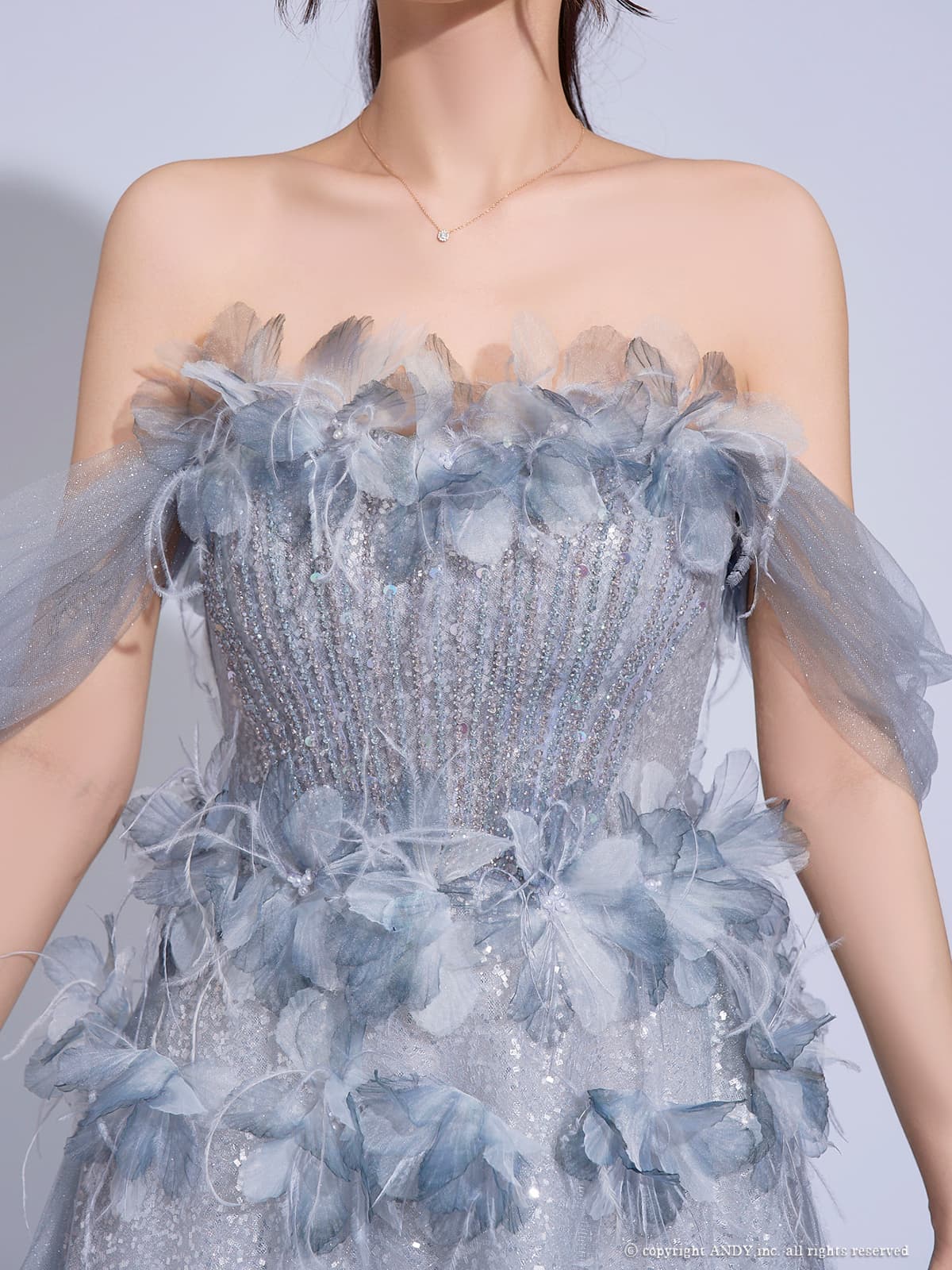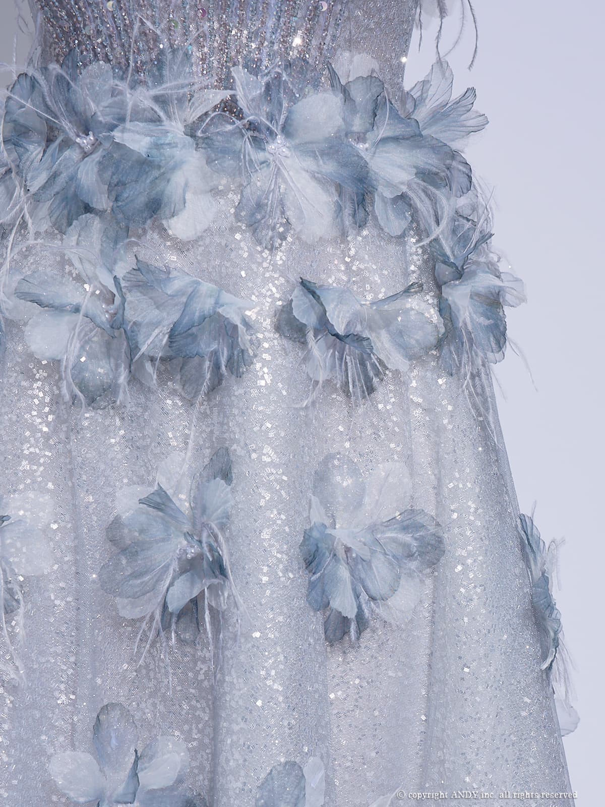 贅沢にあしらわれた立体フラワーモチーフが可憐でロマンティックな印象を与えます。
