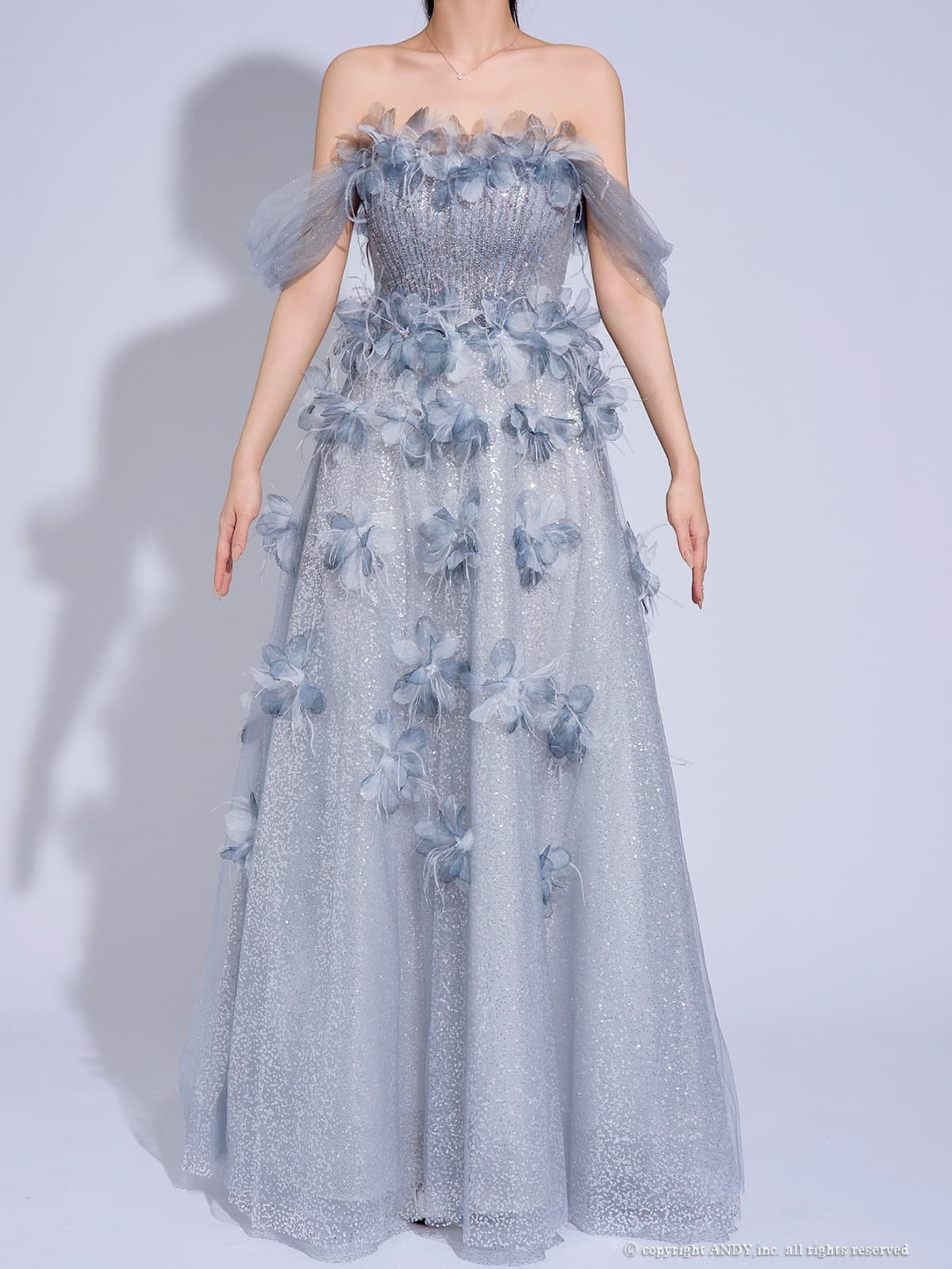 【couture an/クチュールアン】ベア/ オフショル/ 2way/ チュール/ レース/ ラメ/ 立体フラワー/ フレア/ プリンセス/ ロングドレス/ キャバドレス long[OF05] [AOC-WD-054-P-2602]