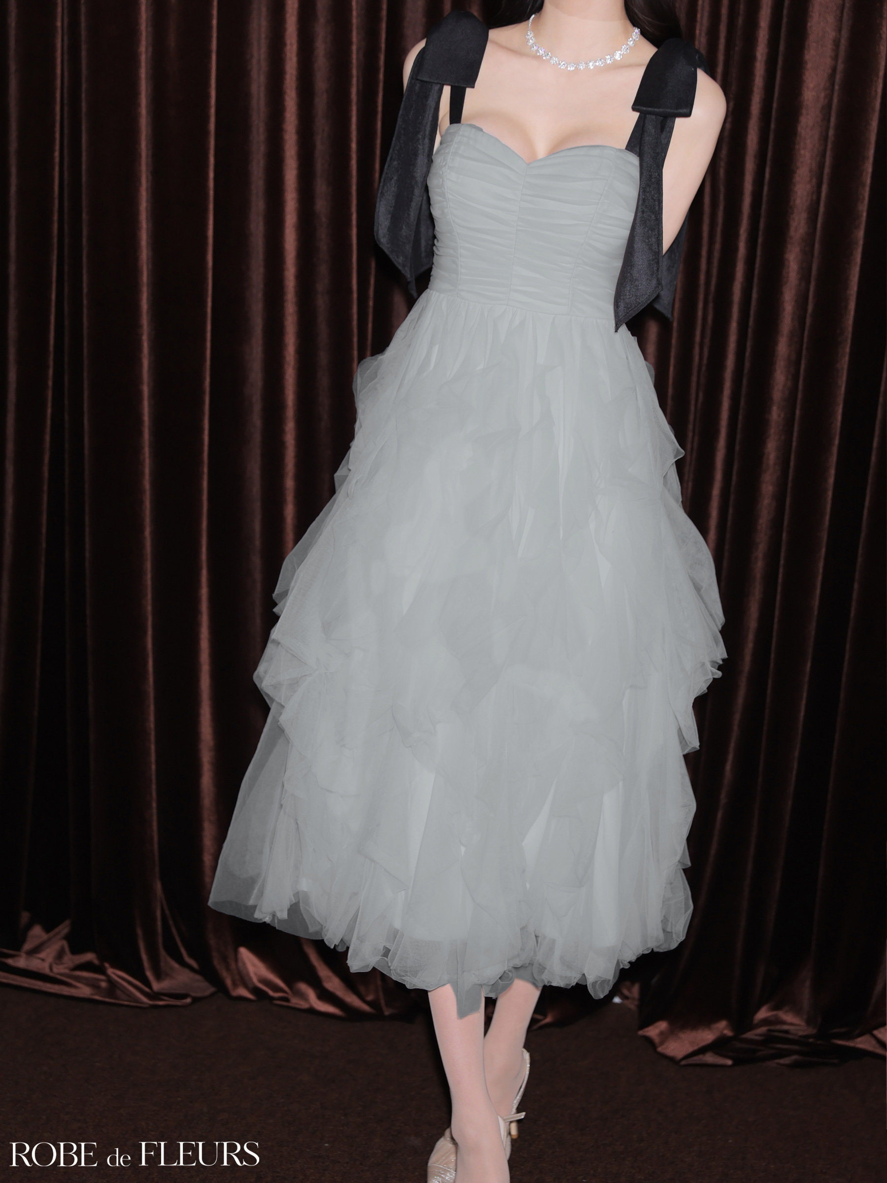 ボリュームたっぷりのチュールがロマンティックなミディアムワンピース♡