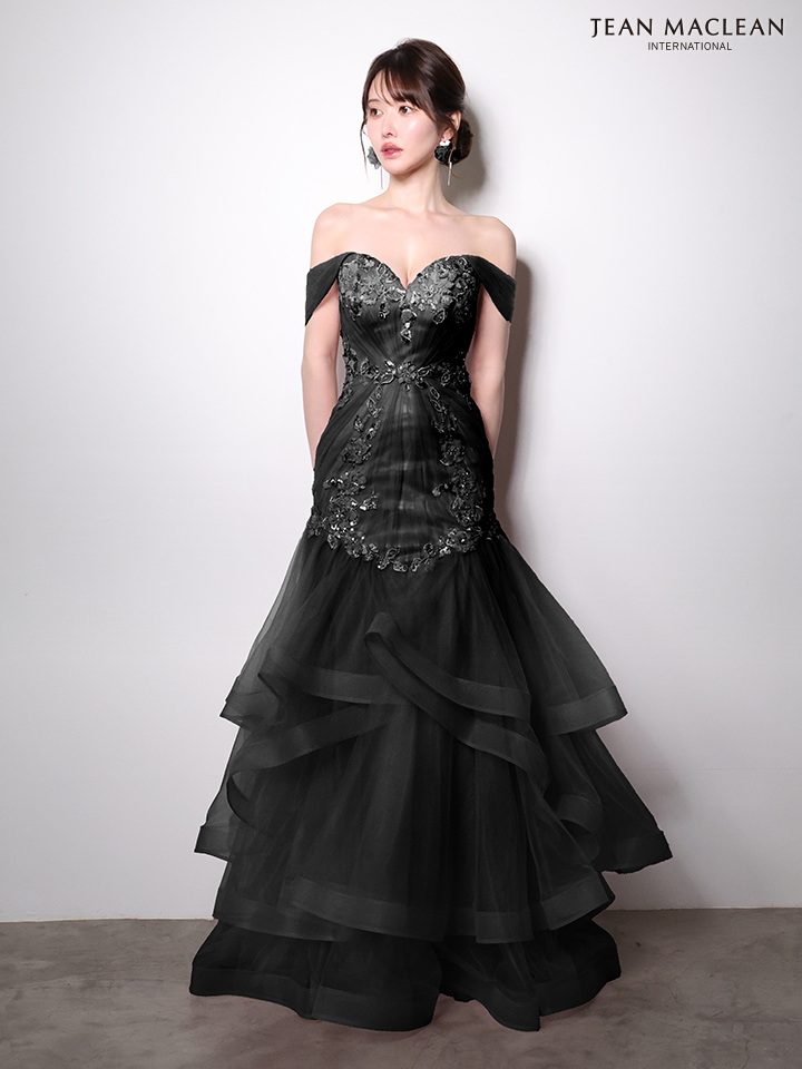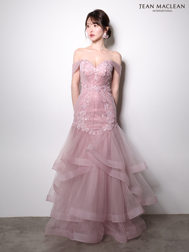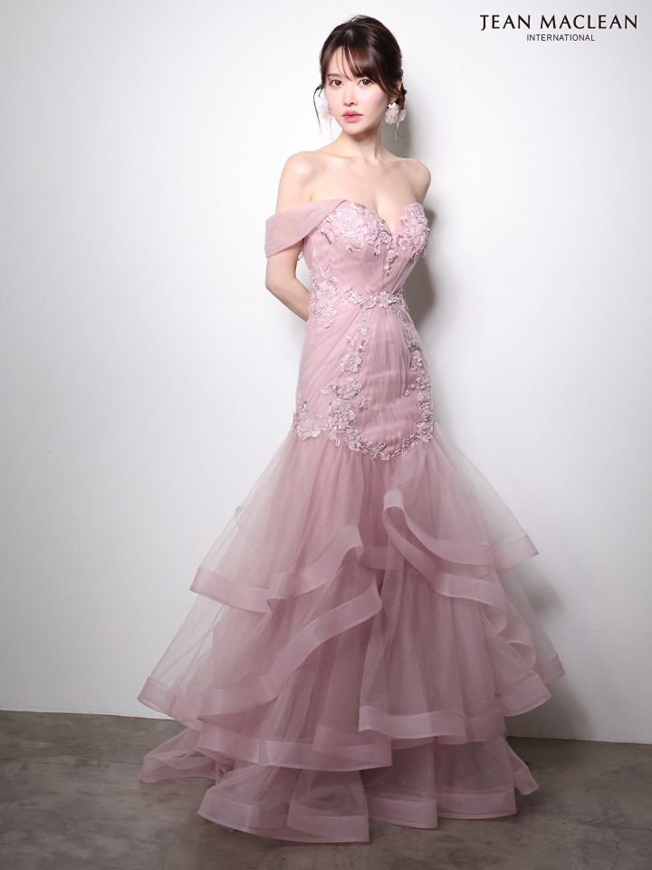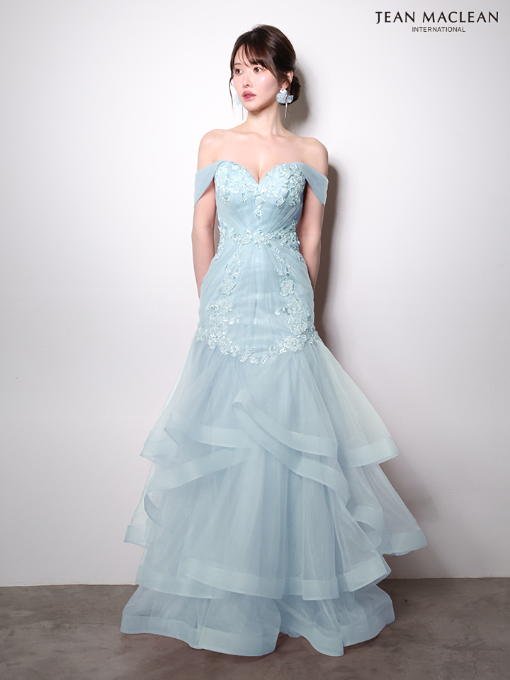 【JEAN MACLEAN/ジャンマクレーン】フラワー刺繍/ レース/ パール/ スパンコール/ チュール/ フロントギャザー/ オフショル/ ティアード/ マーメイド/ プリンセス/ ロングドレス/ キャバドレス long[OF2A] [51008-JM-W-2602]