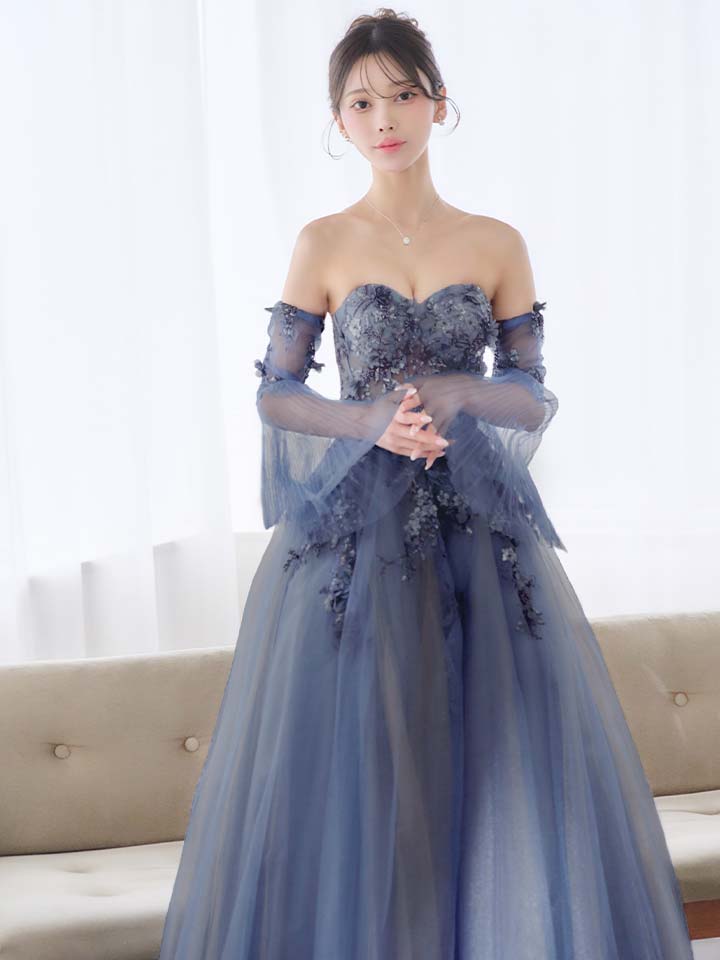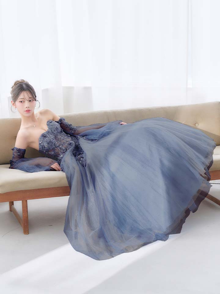 重なり合うシアーチュールがロマンティックなプリンセスロングドレス♡